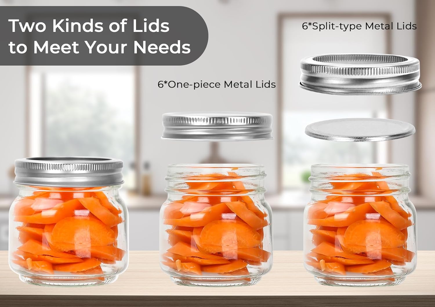 Eathtek Small Mason Jars 8oz/240ml with Regular Lids, 6 Pack Glass Canning Jars With Labels, Mini Glass Jars for Jam Jelly Spice Honey Herbs, Wedding Shower Favors Food Storage Candle Jars