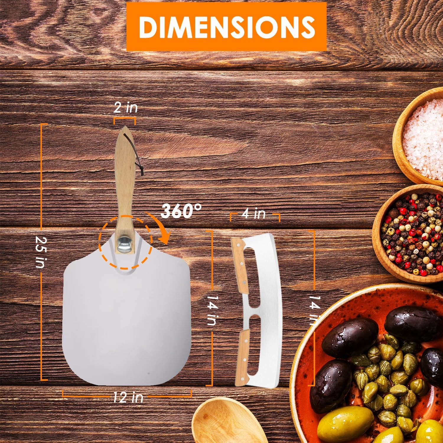 - 🎁【Professional Pizza Cutter Rocker】- Pizza oven accessories includes a covered pizza cutter and a pizza shovel. With a sharp blade, it rocks back and forth to slice the pizza with perfect slices. After cutting the slices, you can distribute the pizza slices to family members or guests, so that everyone can enjoy delicious food together.