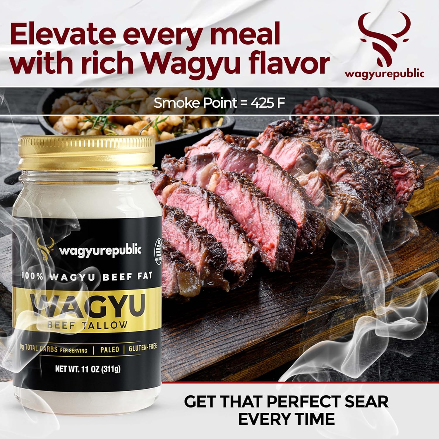 - WAGYU REPUBLIC BEEF TALLOW (32oz) — Elevate snacks and meals with the subtle rich flavor and smooth texture of Wagyu tallow. Perfect for Tomahawk steaks, ground chicken, even pie crusts.