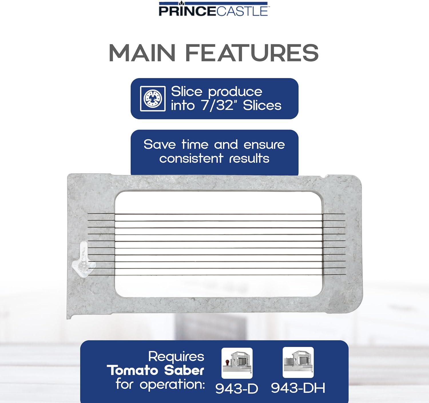 - EFFORTLESS SLICING: With Prince Castle Model 843-041A, effortlessly slice tomatoes into 7/32" thick slices, saving time and ensuring consistent results. For use with 943-D or DH