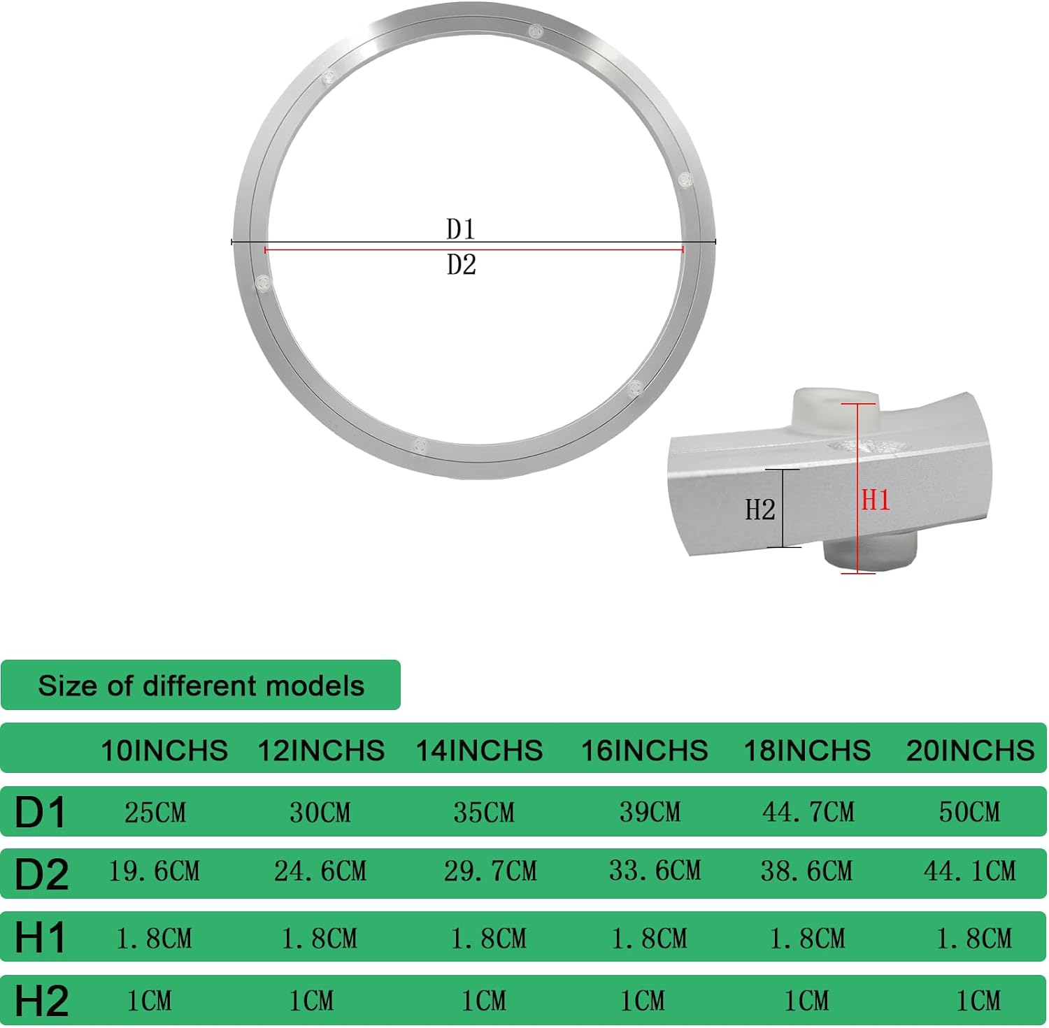 - ✅【OFFERING a VARIETY of SIZES】our heavy duty aluminum turntable ball bearings offer you a variety of sizes: 10 inch, 12 inch, 14 inch, 16 inch, 18 inch, 20 inch. Please see our pictures for our swivel bearings.