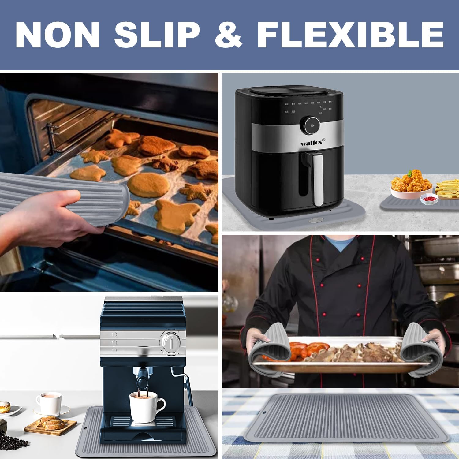 - EASY TO CLEAN UP & STORE: Walfos silicone mats for kitchen counter are hand washable and can be just thrown in the dishwasher. Almost anything can be easily washed off the non-stick surface and dried quickly. Can be rolled up or hung on a hook for storage to save space