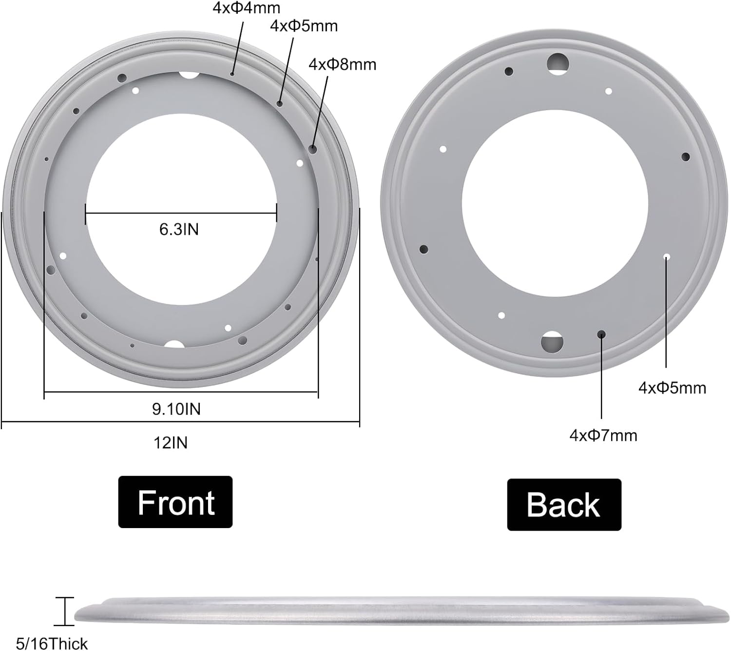 - 【Package Includes】1pcs 12" Round Lazy Susan Ball Bearing Turntable; 5/16" in thickness. For turntables with a diameter between 15 and 30 inches.