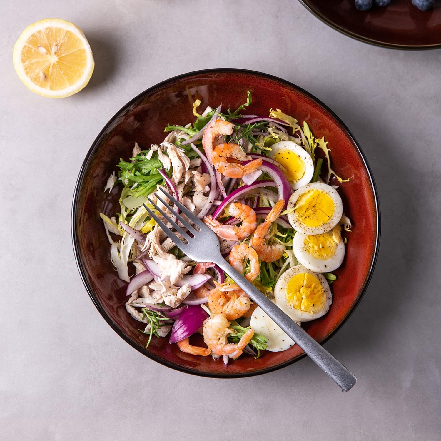 - 【UNIQUE AND SCRATCH RESISTANT】 Our bowls sets are fired with two different glazes,The reactive glaze make every plate is unique,Since our glaze is all-natural reactive finish, the surface of plates would change color on lighting,So Our glaze is also extra strong to prevent scratches from your knives and forks.