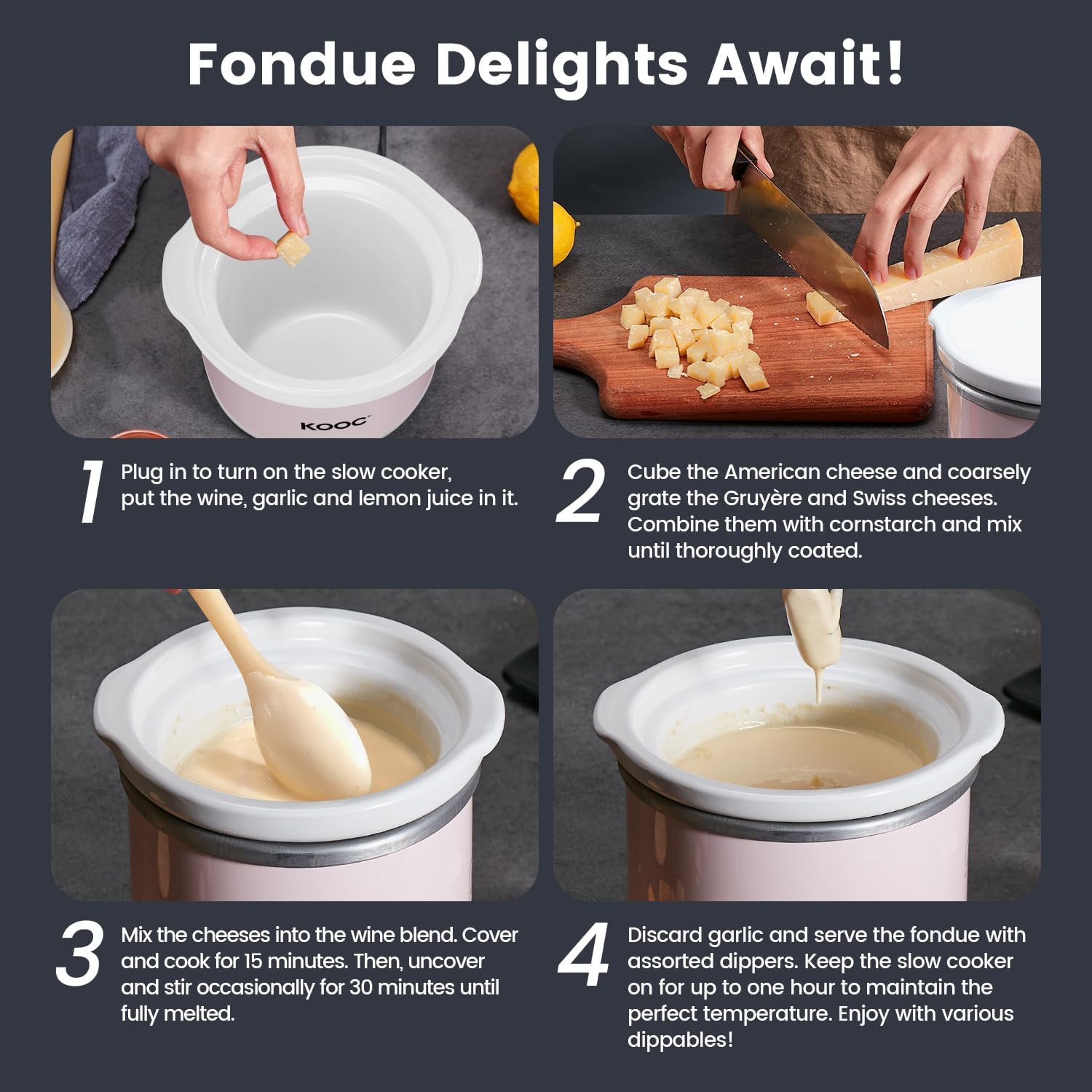 - [EXPANDABLE COLLECTION] KOOC slow cookers come in a wide range of sizes and colors to suit different cooking needs. From compact 0.65 Quart models perfect for singles or couples, to larger 8.5 Quart options ideal for families or entertaining guests, there's a slow cooker for everyone