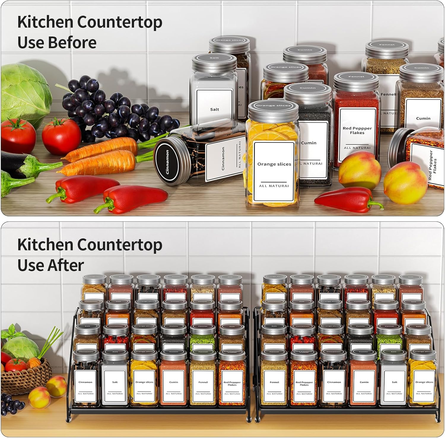 - Metal Material Strong & Sturdy: Seasoning organizer is made of high-quality metal, the each tier has a sheet metal base design. making the spice bottles more stable to place and less likely to tip over. With cabinet spice rack, you can nicely organized your spice bottles in your cabinet in leveled tiers.