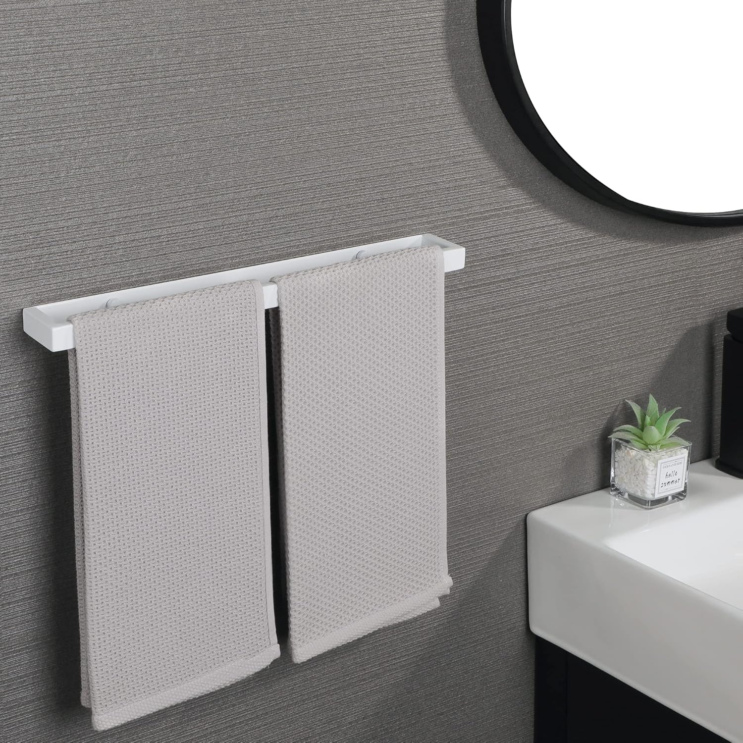 - 【Nice Whtie Finish】The towel bar is finished by super high temperature matte white painting, smooth white surface, pure and beautiful appearance, suitable for a variety of bathroom decoration styles, not easy to remove paint and oxidation.