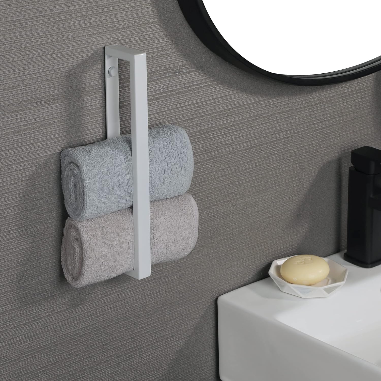 - 【Nice Whtie Finish】The towel bar is finished by super high temperature matte white painting, smooth white surface, pure and beautiful appearance, suitable for a variety of bathroom decoration styles, not easy to remove paint and oxidation.