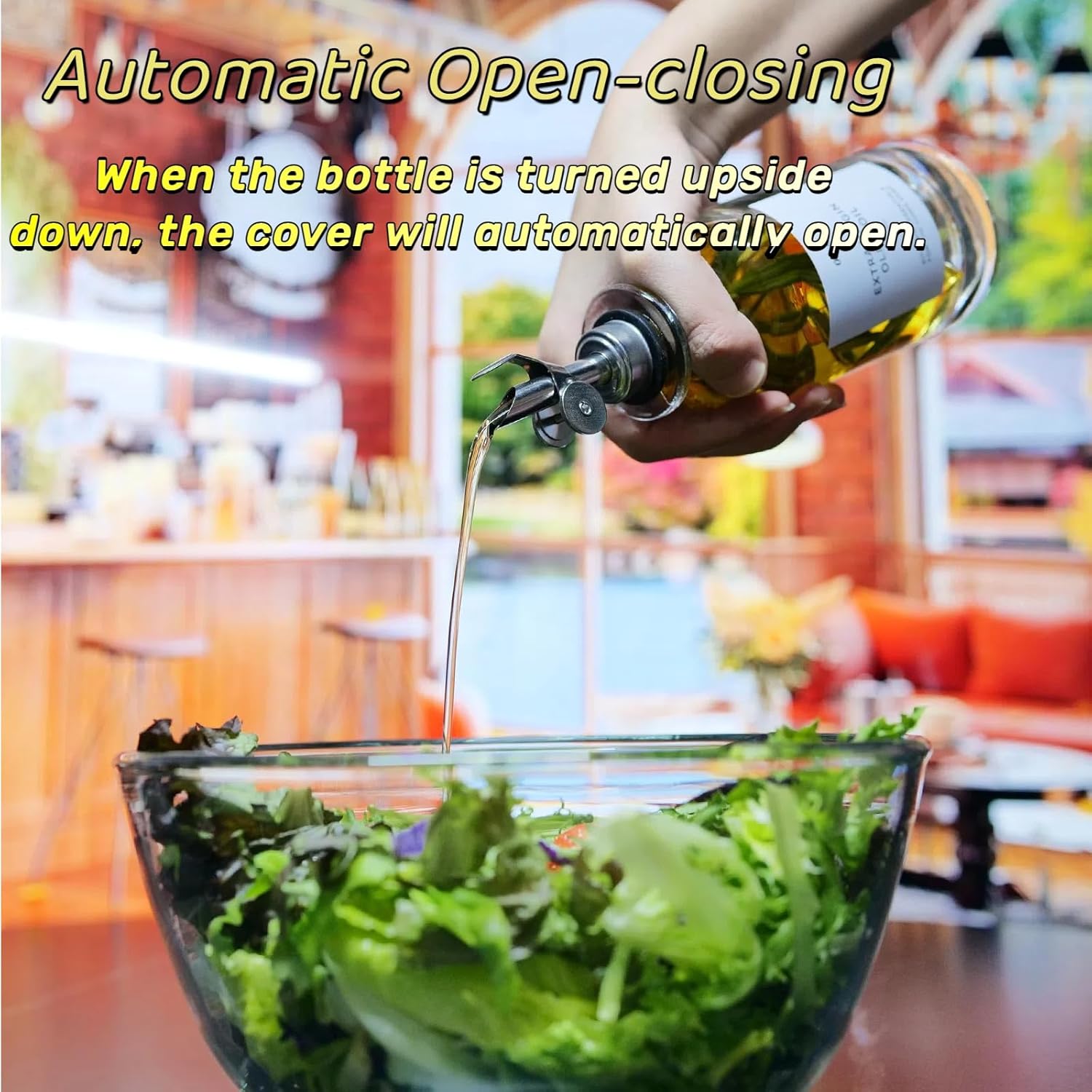 - Auto-Open Feature: The unique auto-open design of our 304 stainless steel oil dispenser spout means that as soon as you tilt the bottle downward, the lid effortlessly springs open, ready for pouring.