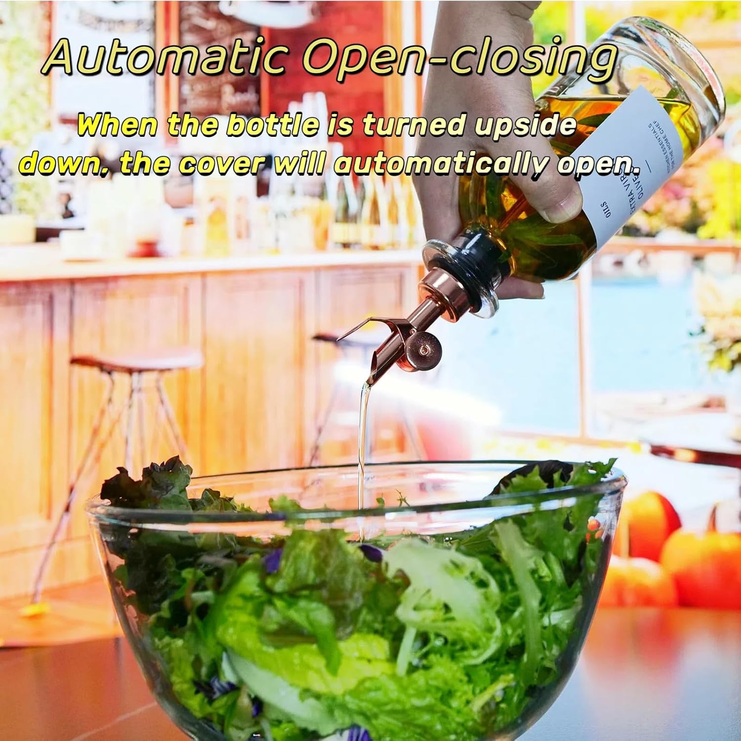- Auto-Open Feature: The unique auto-open design of our 304 stainless steel oil dispenser spout means that as soon as you tilt the bottle downward, the lid effortlessly springs open, ready for pouring.