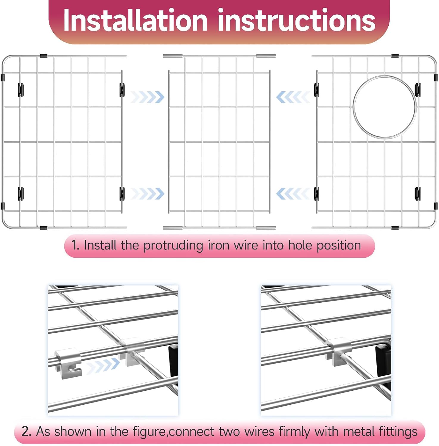 - Multifuctional Sink Protector: Bottom grid for kitchen sink with well-made metal construction offers additional workspace for rinsing and drying vegetables, fruits, drying dishes