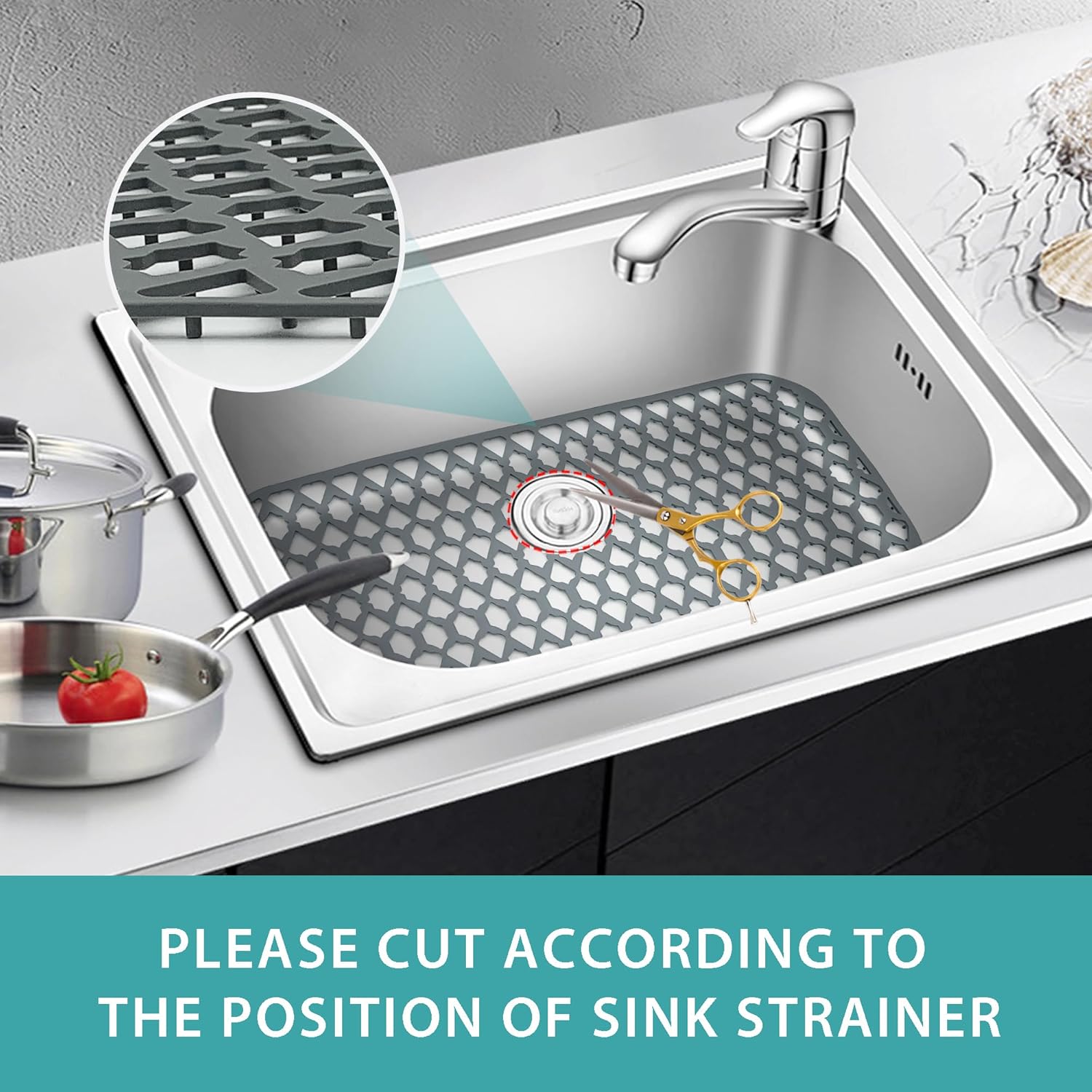 - Large Size & Flexiable - The size of our silicone sink mat is 30 ×14 inches. The silicone sink mat is flexiable that easy to fit the bottom of the kitchen sink. The silicone sink mat not only can be sink protectors for kitchen sink, but also can be a drying mat or dish mat. It is an essential item for the daily cleaning of the kitchen.