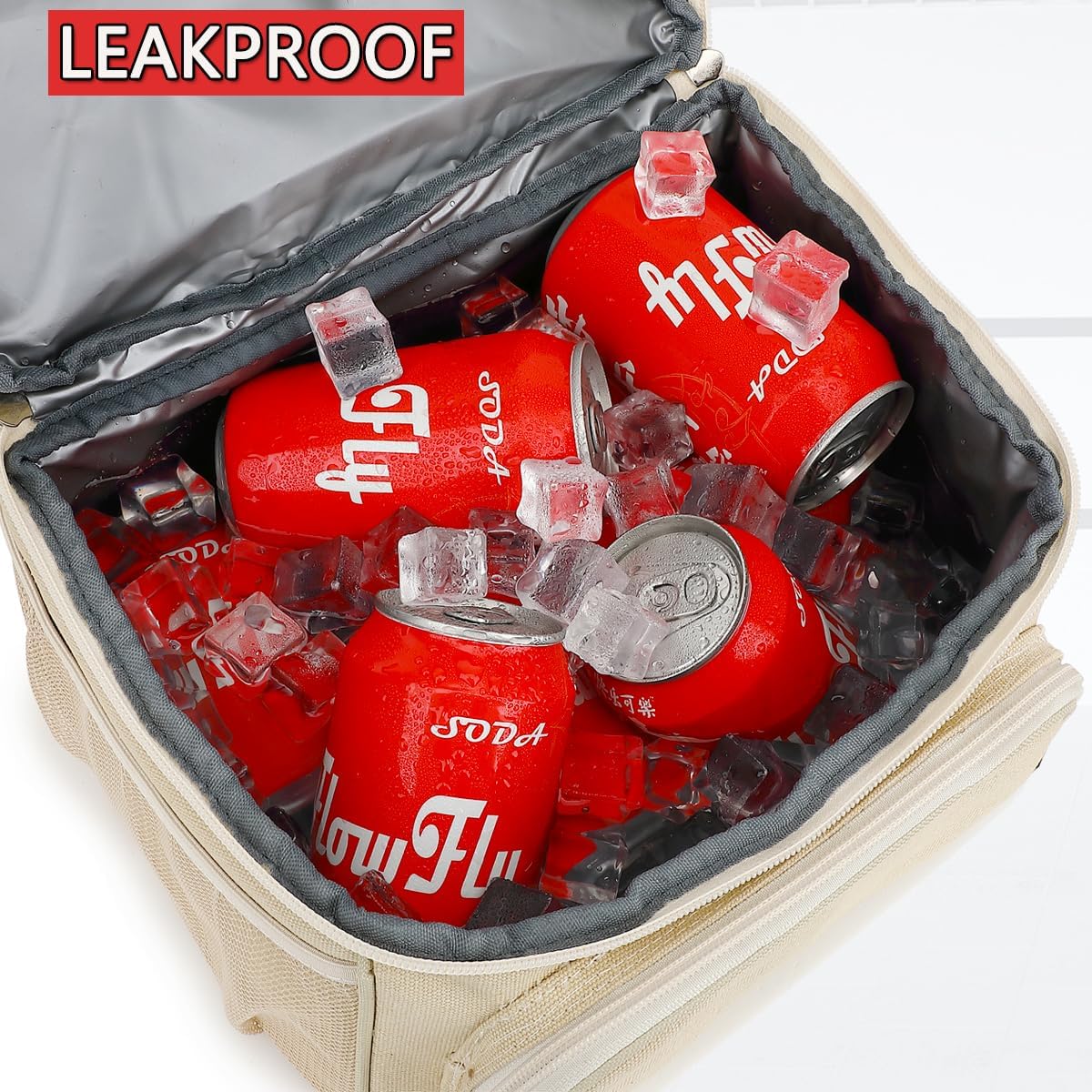 FlowFly Double Layer Cooler Insulated Lunch Bag Adult Lunch Box Large Tote Bag for Men, Women, With Adjustable Strap,Front Pocket and Dual Large Mesh Side Pockets