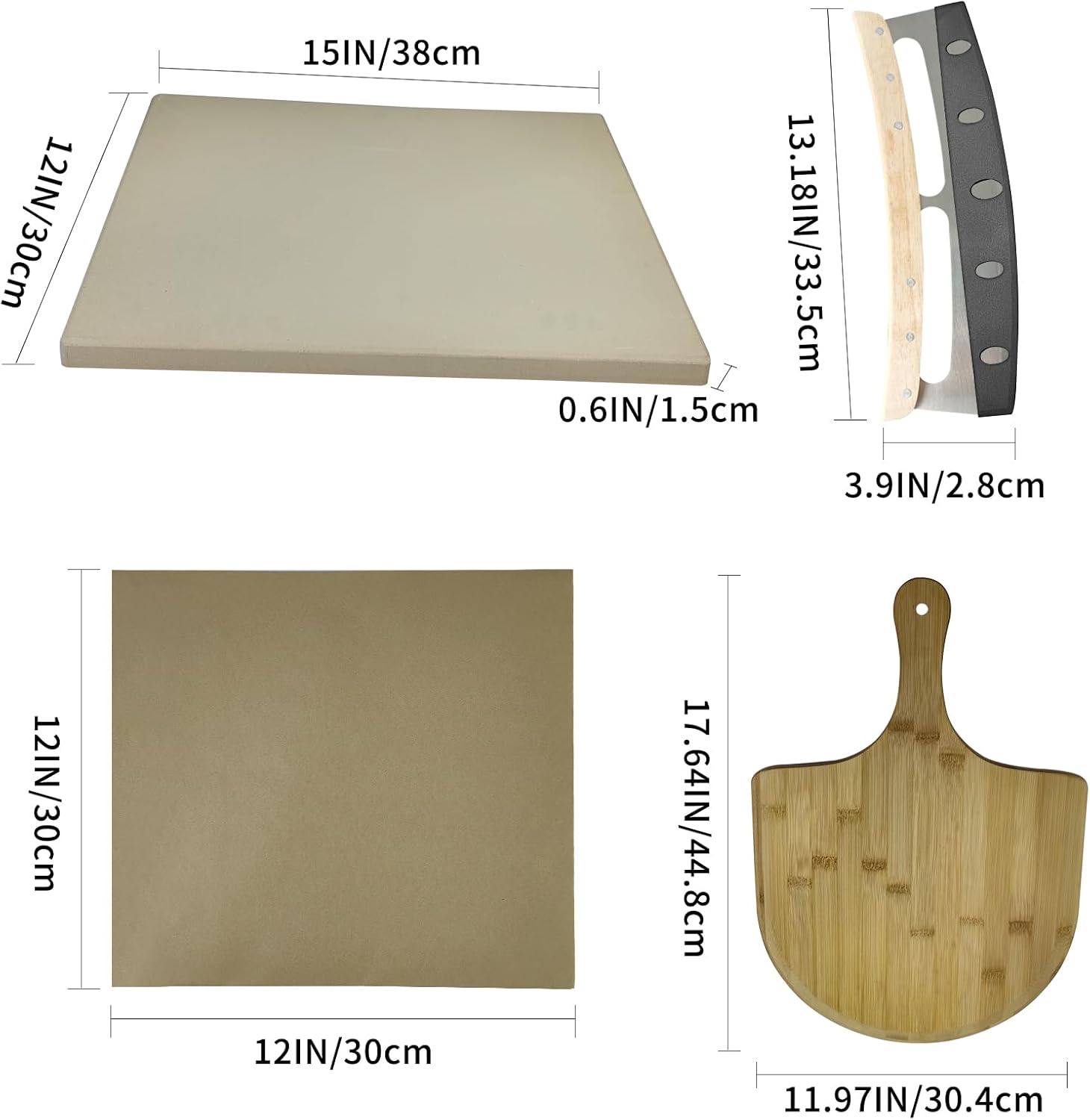 - 【Widely Applications】In addition to baking pizzas bread at home, this pizza stone,pizza peel,pizza cutter kit is perfect for making yourself breads, cookies and pies, wonderful for grills and toaster ovens ,pizza oven stone.