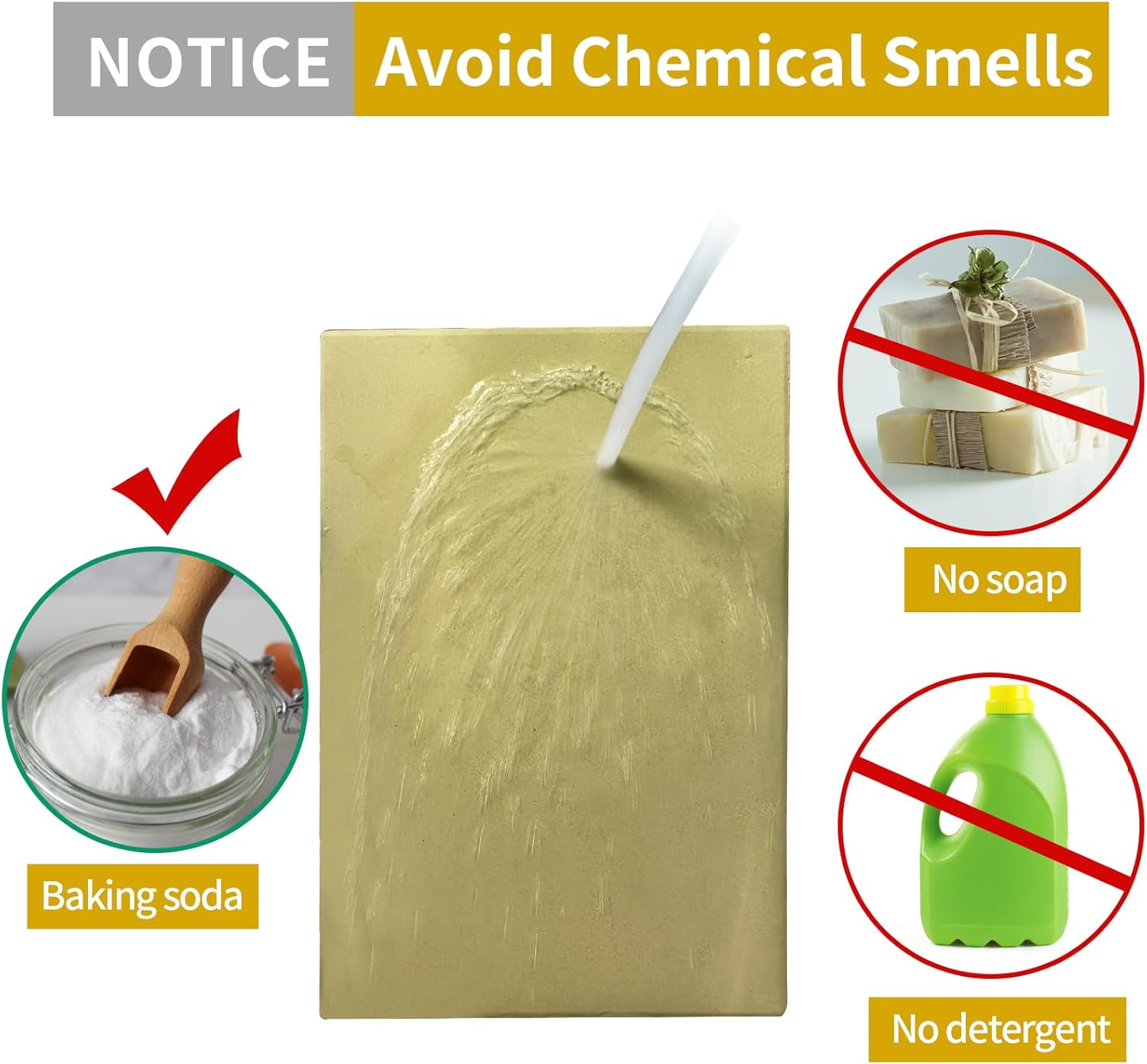 - 【Easy to Cleaning】Scrape off any leftover residue with the plastic scrape before cleaning.When the pizza stone has cooled, wipe it down with a clean, damp towel or wash it directly under water.⚠️⚠️[Warnings Tips]:Never use soap or detergent to clean the pizza stone.Please don't place oil,sauce ,cheese directly on the stone,which will leave a soapy after taste.If you don't like food left behind on the surface of your pizza stone, please use our complimentary parchment paper.These marks will not affect the performance or function of the stone.