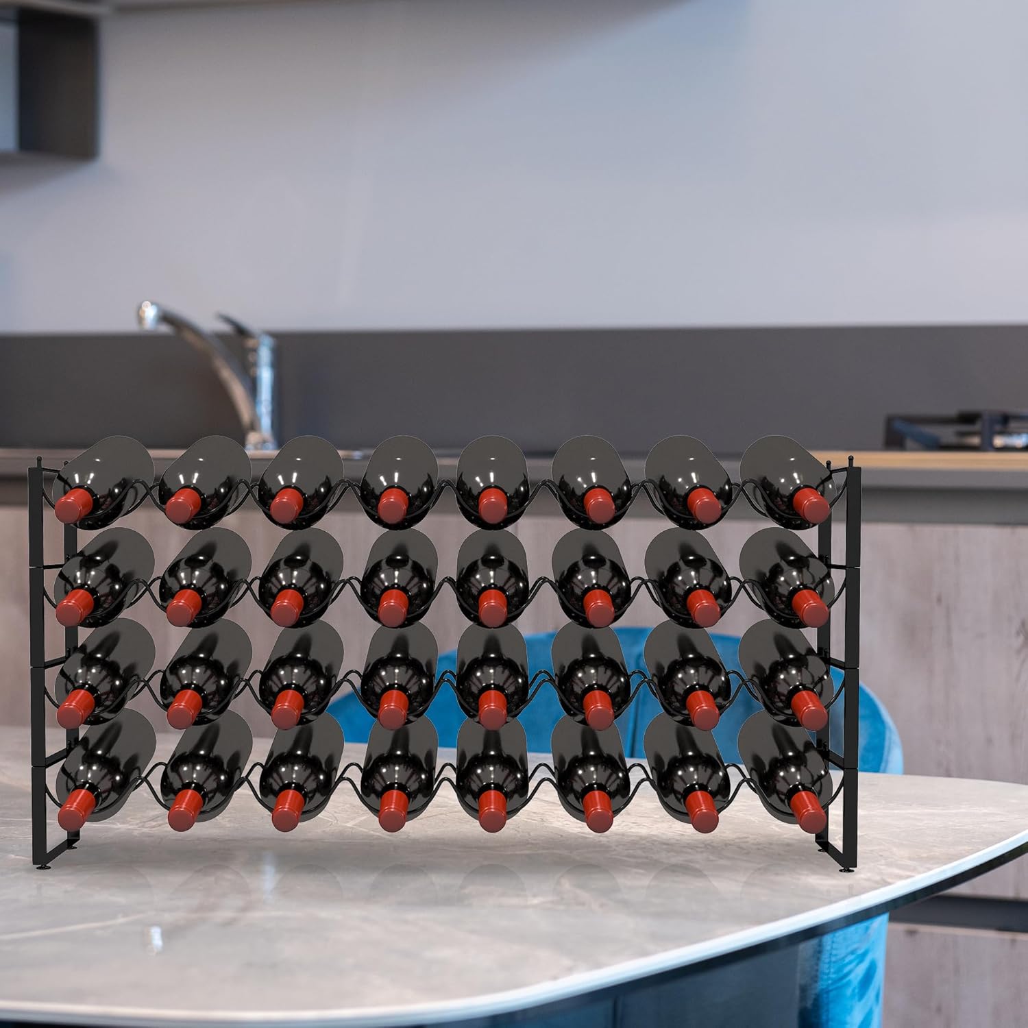 - 【Large Capacity】Size: 37''L x 7.6''W x 19.7''H, this countertop wine rack can hold up to 32 standard wine bottles. Also, the horizontal storage method ensures that the wine is in contact with the cork, keeping the cork moist and allowing the wine to be stored for longer until you are ready to enjoy it.