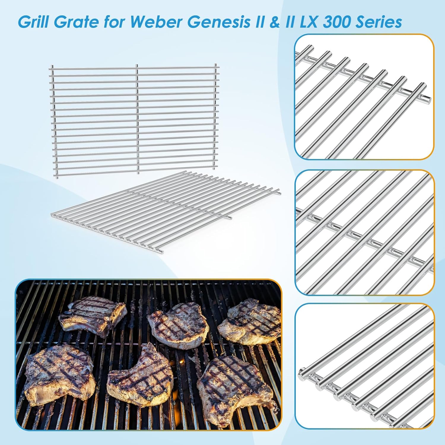 - ✅7mm SUS304 Stainless Steel Cooking Grates for Weber Genesis II LX S/E-340, Genesis II S-310 (2017), Genesis II 310/335 (2019) gas grills ✅Replacement for Weber Original Part Number: 66802 66095 66805 84136 7599 for weber grill grates replacement for weber genesis ii gs4 parts replacement grill grates