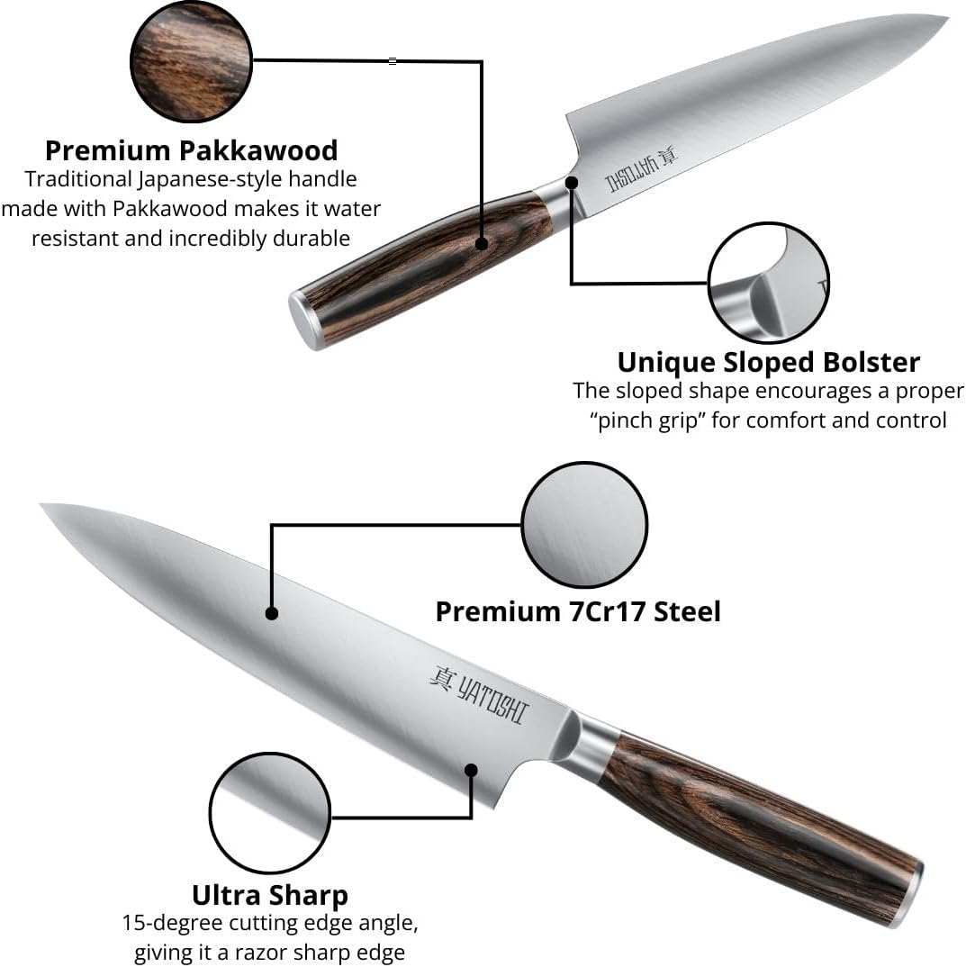 Yatoshi 15 Piece Knife Block Set - Pro Kitchen Knife Set Ultra Sharp High Carbon Stainless Steel with Ergonomic Handle