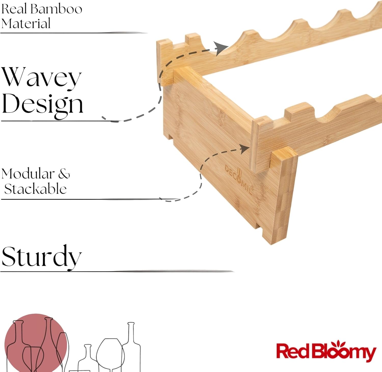 - Red Bloomy Bamboo Modular Wine Rack