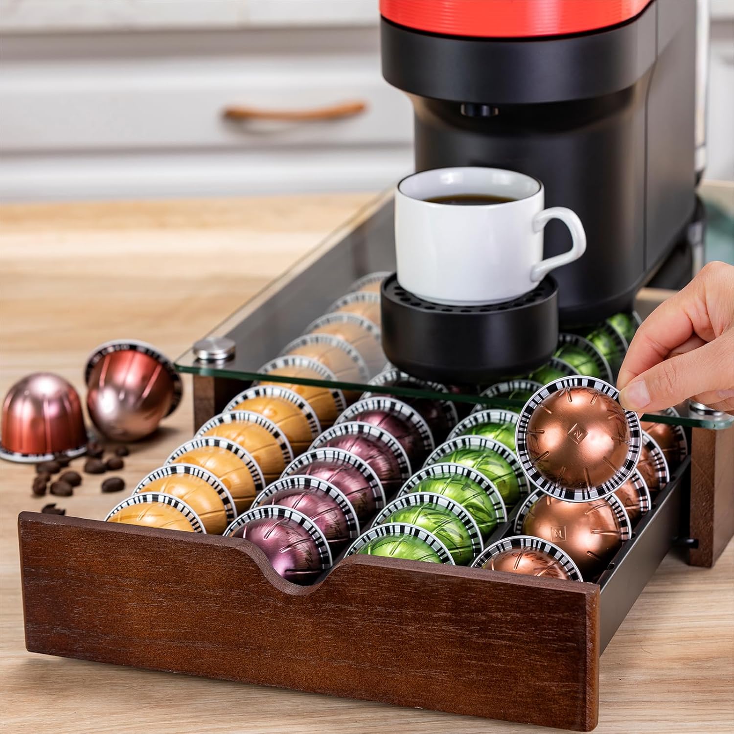 Nespresso Pod Holder Vertuo Pod Drawer With Glass For Cabinet Vertuoline Pod Storage Rack For Counter (40 Pods)