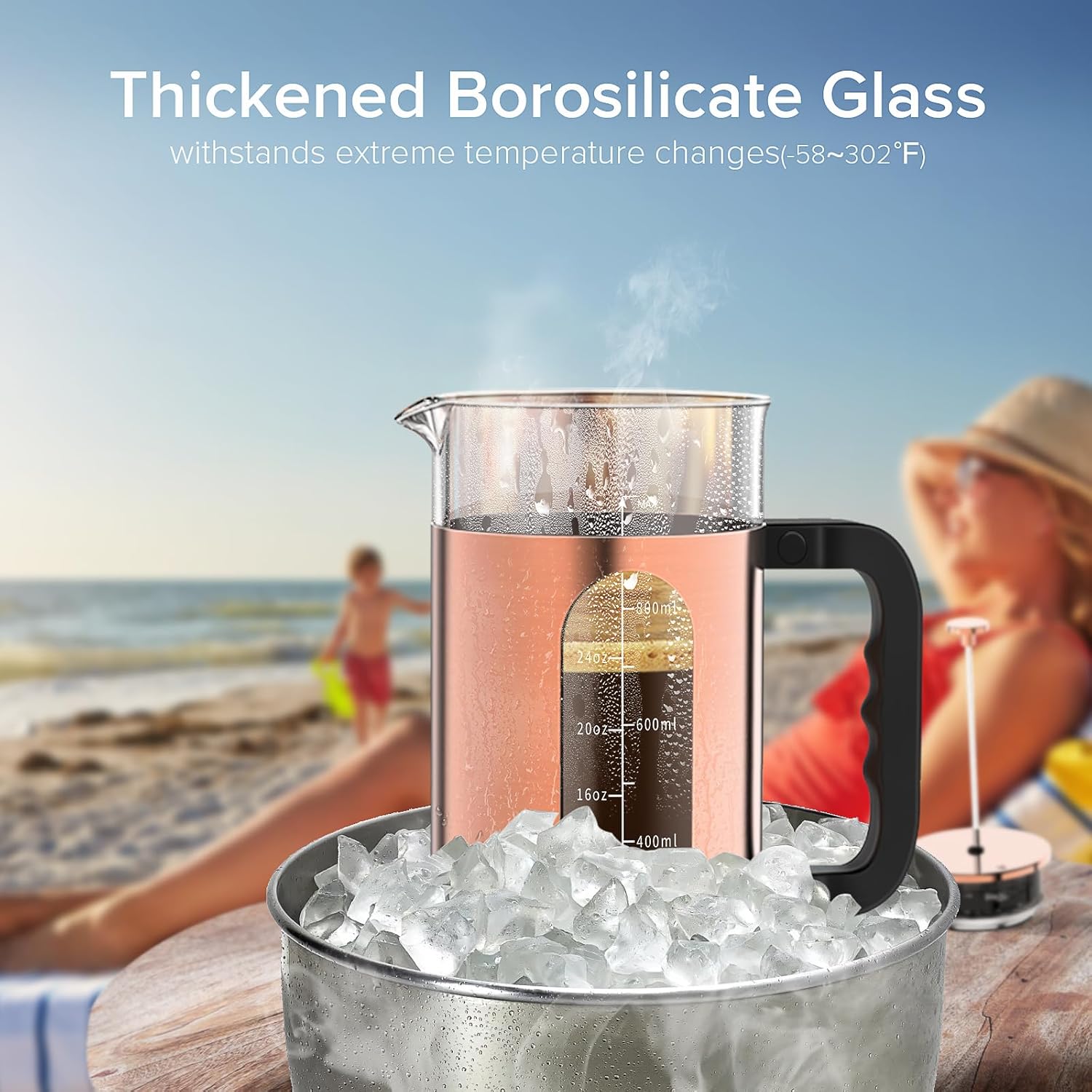 QUQIYSO French Press Coffee Maker, 304 Stainless Steel French Press with 4 Filter, Heat Resistant Borosilicate Glass, Easy to Clean, BPA Free Coffee Press Rust-Free Coffee Maker, 34 ounce, Copper