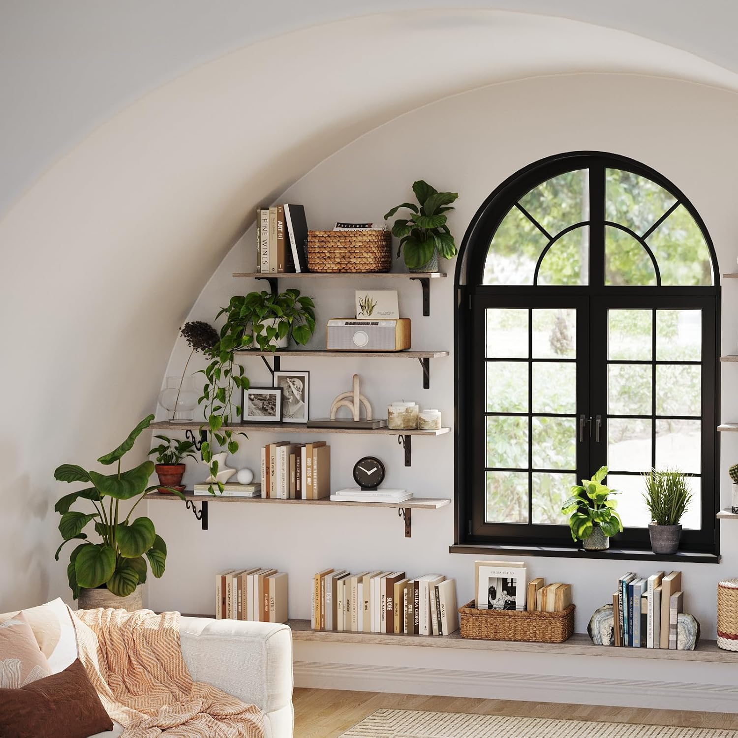 - 【Add Finishing Touch to Space】Mid-century design adds a retro-chic vibe to your home. Rusticity wood grain and exquisite S-shaped iron brackets flaunt visual interest and romance. They are full of character and enhance the texture of the space. A classy way to display your beloved decorations