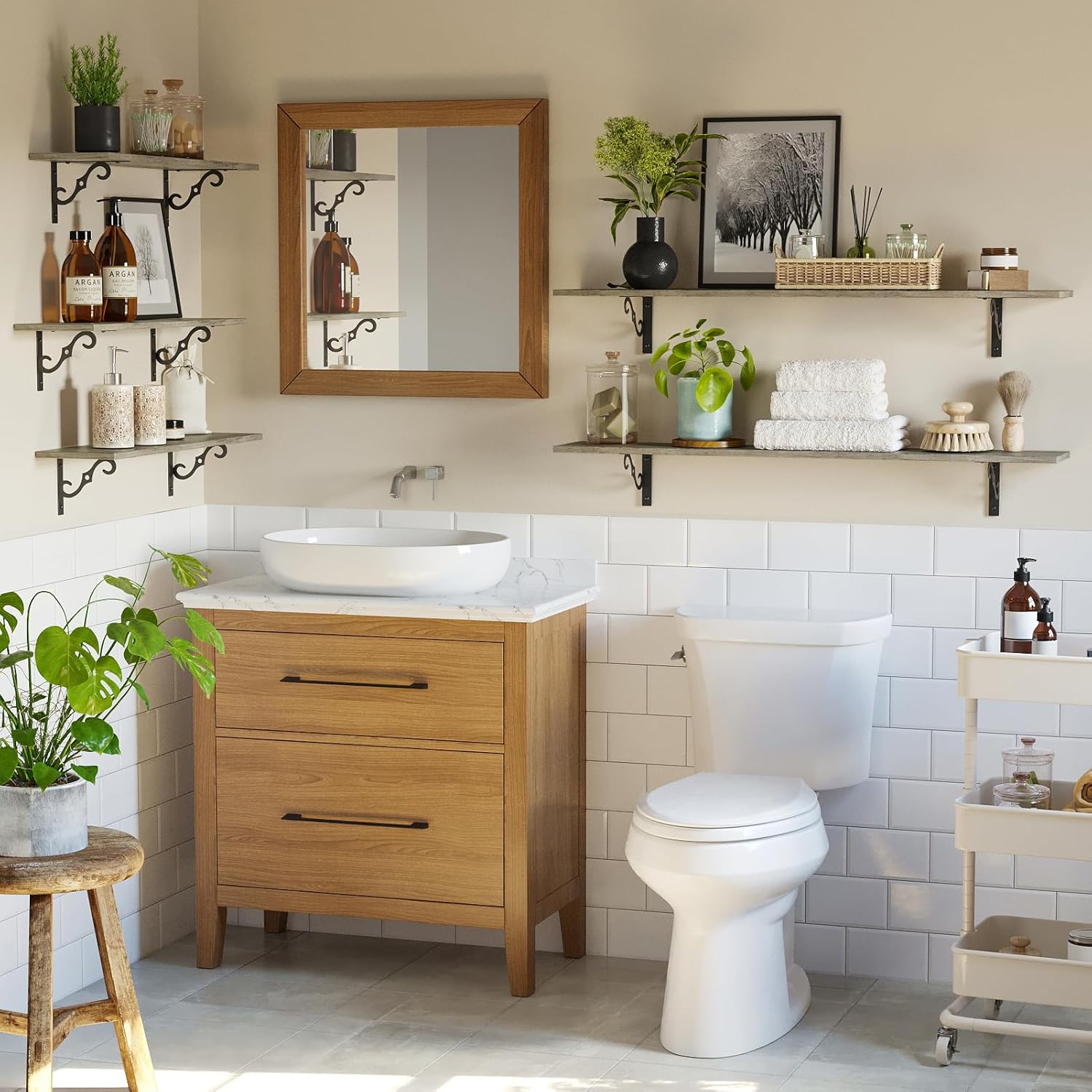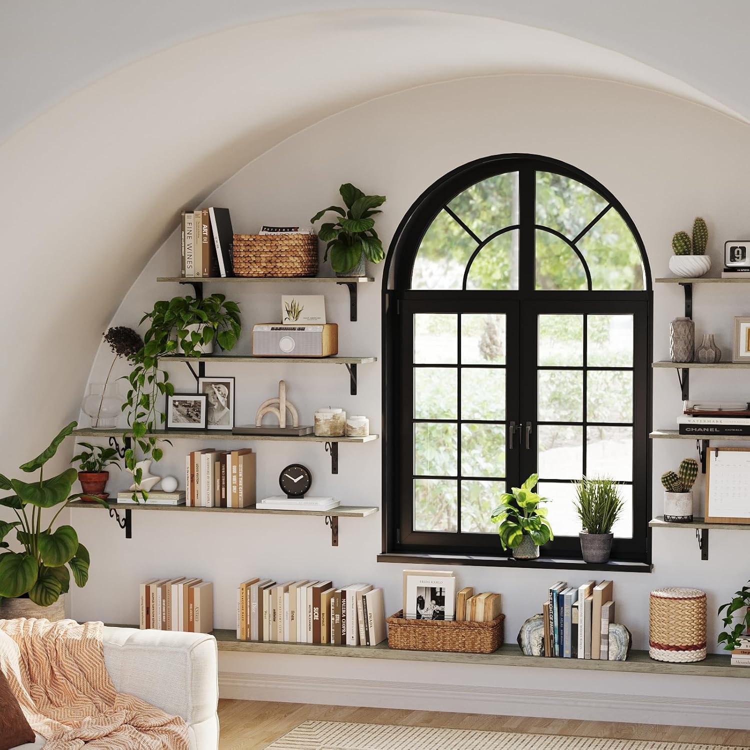 - 【Add Finishing Touch to Space】Mid-century design adds a retro-chic vibe to your home. Rusticity wood grain and exquisite S-shaped iron brackets flaunt visual interest and romance. They are full of character and enhance the texture of the space. A classy way to display your beloved decorations