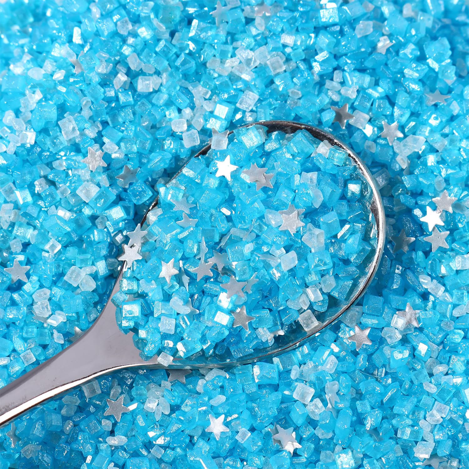 Sanding Sugar Edible Silver Glitter Stars Mix, Edible Blue Sugar Sprinkles for Cake Decorating, Sparkling Edible Sanding Sugar for Cupcake Toppers Cookie Decorations For Wedding Party Celebrations 3.5oz (Sky BLue)
