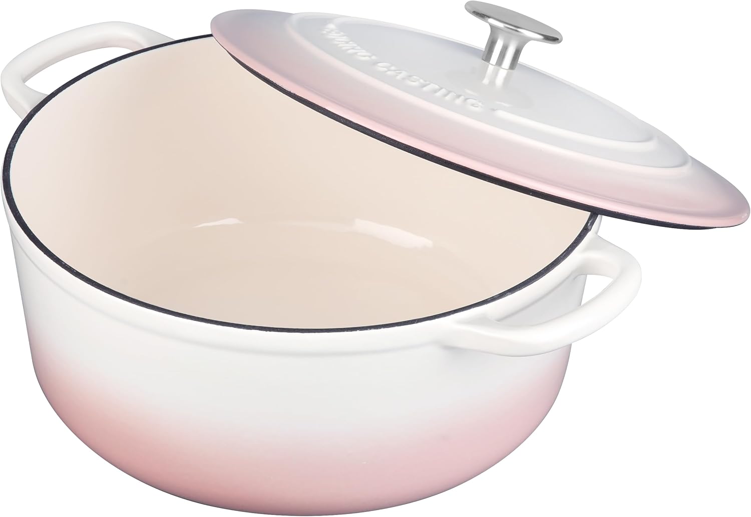 Enameled Cast Iron Dutch Oven Pot With Lid, 7 Quart, for Bread Baking, Cooking, White-Pink