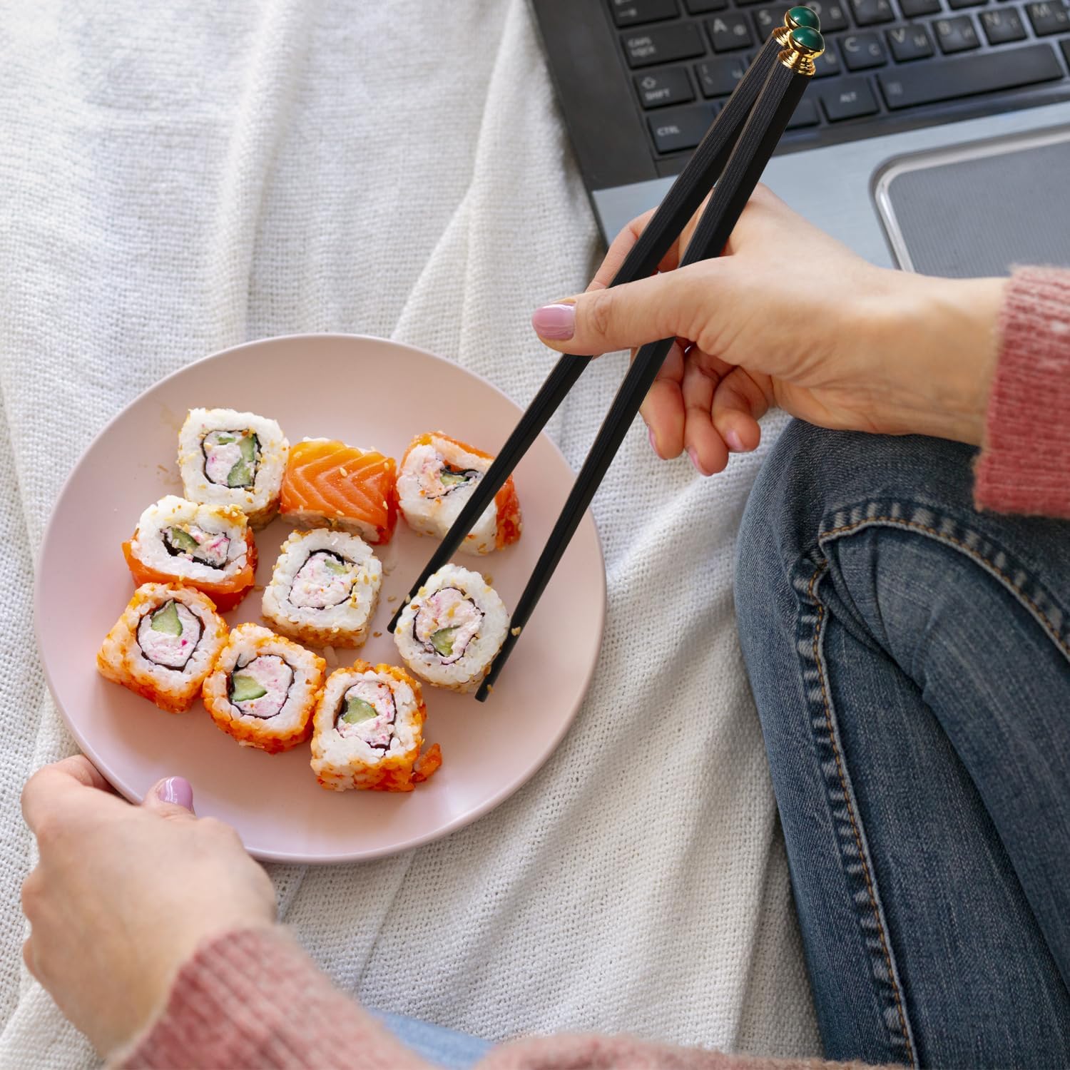 - Value 5 Pairs Chopsticks Set: Our chopsticks set is decorated with exquiste Green Tops, which are very stylish and modern. These reusable chopsticks add an elegant touch to any table setting. It creats a visually appealing dining experience when you enjoy food such as sushi, ramen, or even General Tso's Chicken.