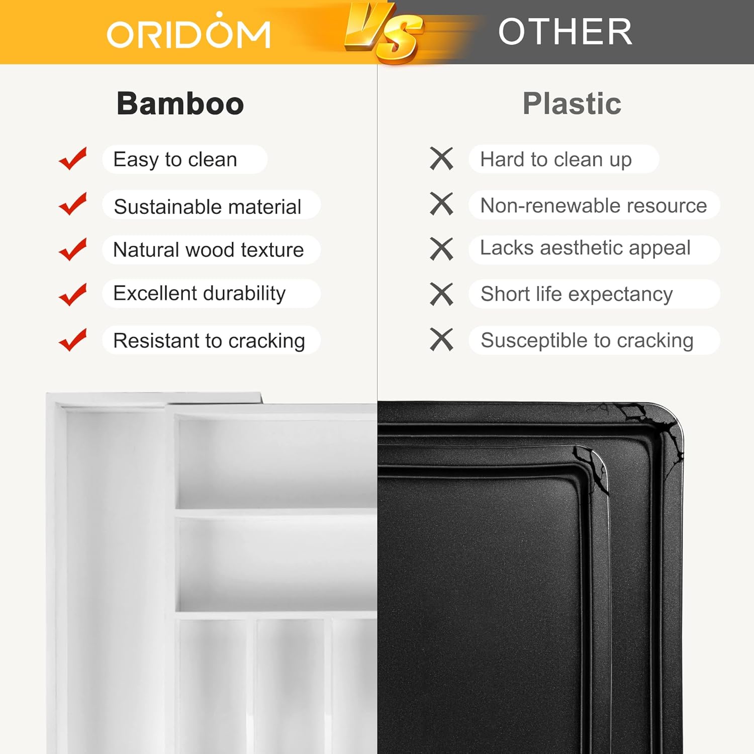 - ✅【Money -Back Warranty with Oridom】At Oridom, your happiness and satisfaction are at the heart of what we do. We're dedicated to delivering not just premium products, but also top-tier customer service: a full 1-year warranty, a no-questions-asked money-back guarantee, and round-the-clock customer assistance. We're here for you every step of the way, what you can get are high quality bamboo utensil organizer for kitchen drawers and friendly customer service.