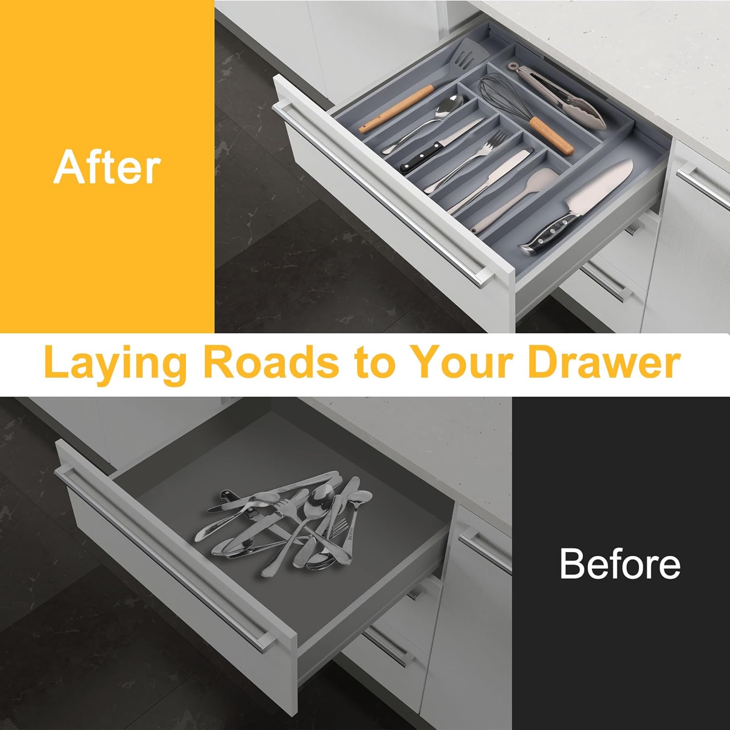 - ✅【Multi-purpose and Convenience】Not only is this the perfect solution for keeping your kitchen drawers neat and tidy, but this organizing tool is incredibly versatile for the office, dresser, makeup drawer and craft corner. Easily keep pencils, pens, markers, sticky notes, paper clips and other office supplies in one place for easy grabbing. Neatly place jewelry, makeup brushes, and even paints, brushes and other art supplies, all-in-one organizing solution!