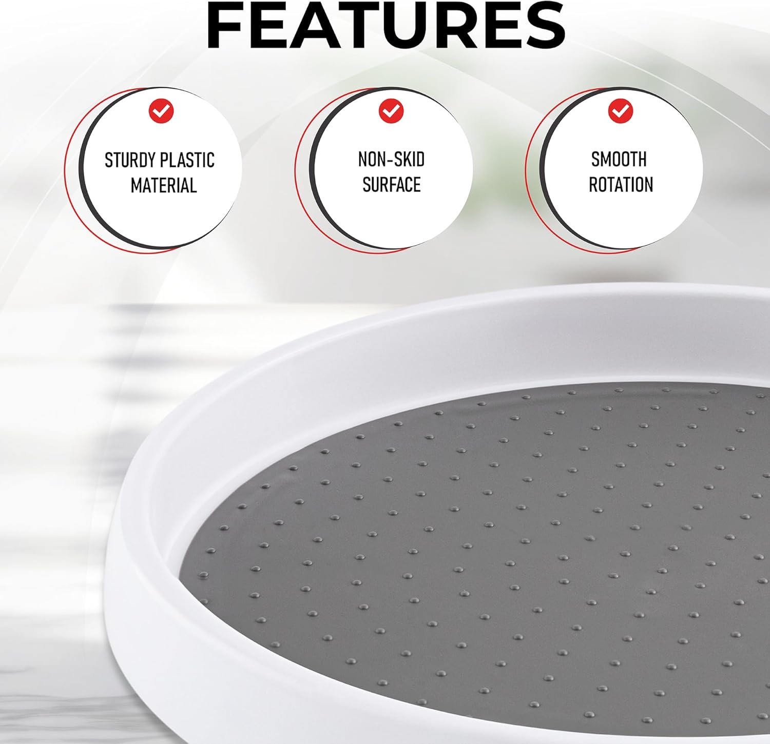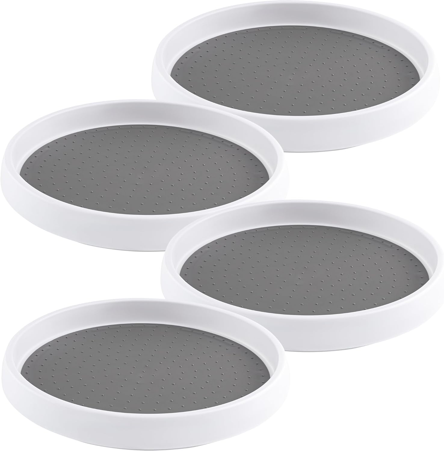 Oizeir 10 Inch Lazy Susan Set of 4 - Non-Skid Turntable for Cabinet to Maximize Storage and Simplify Accessibility in Kitchen, Bathroom, and Pantry Spaces (White)