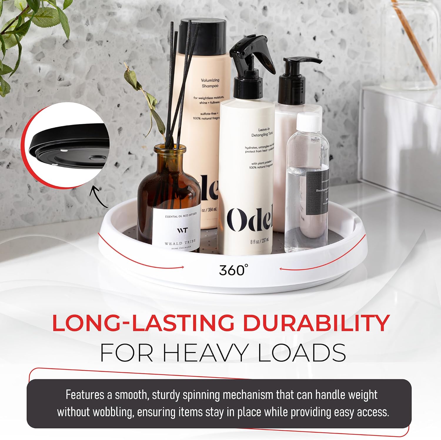 - NON-SKID SURFACE: Features a textured top that grips items firmly, reducing slippage and enhancing stability, ensuring your essentials remain secure, even as the turntable rotates
