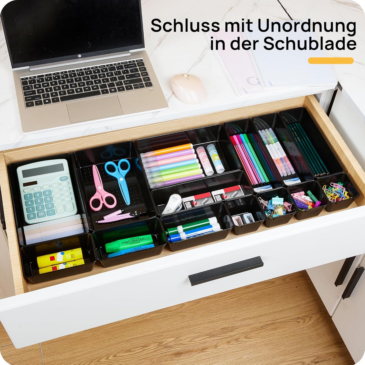 - ăEasy to CleanăOur desk drawer storage bins are easy to be wiped clean with a damp cloth and perfect for keeping everything in its place. Convenient for use in your daily life, make everything look beautiful and better organized.