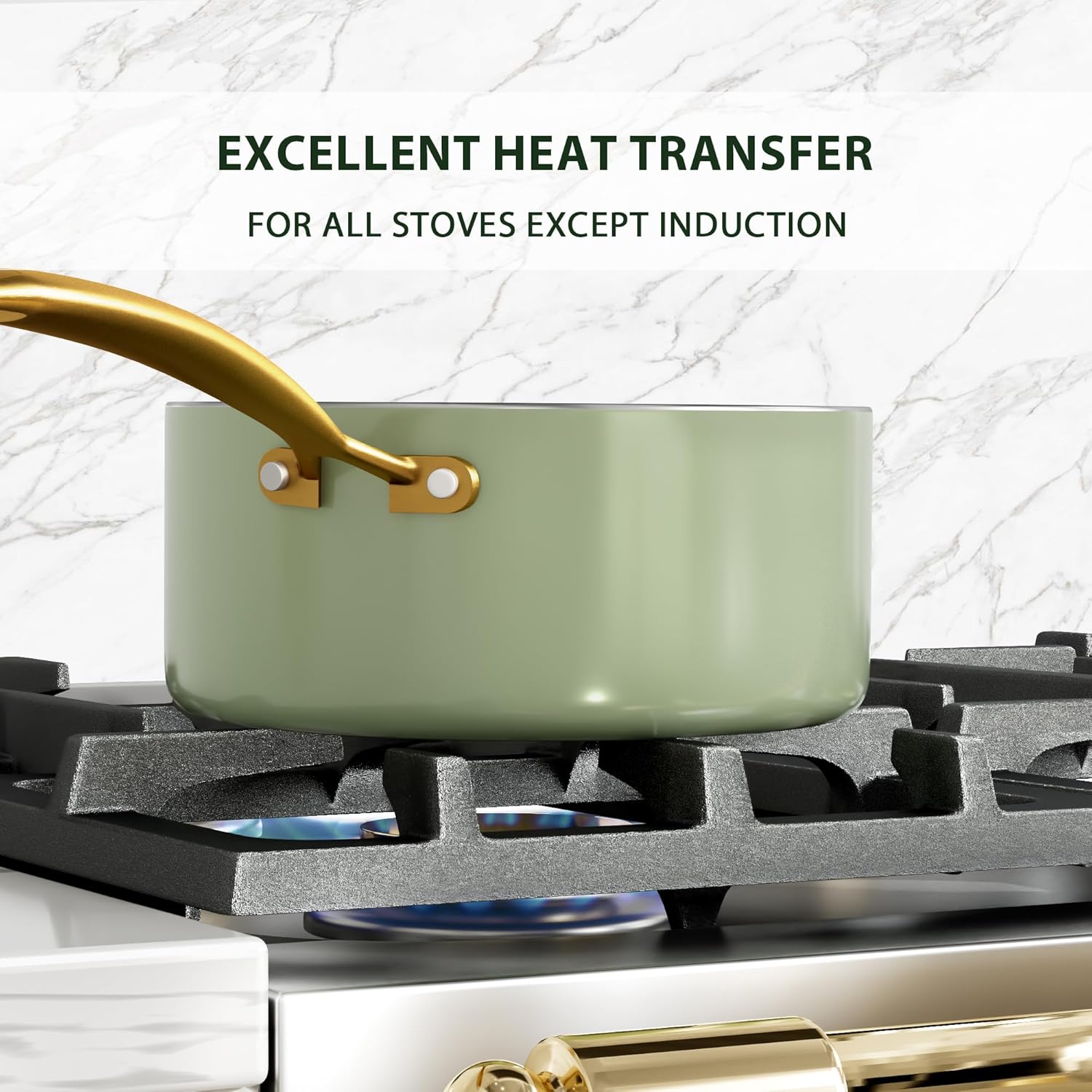 - For all Stovetops Except Induction: The nonstick cookware set does not have a magnetic induction bottom, which allows faster heating on other cooktops, saving time and energy. Plus, oven safe up to 550°F, making cooking pot set nonstick great for bread baking and roasts.
