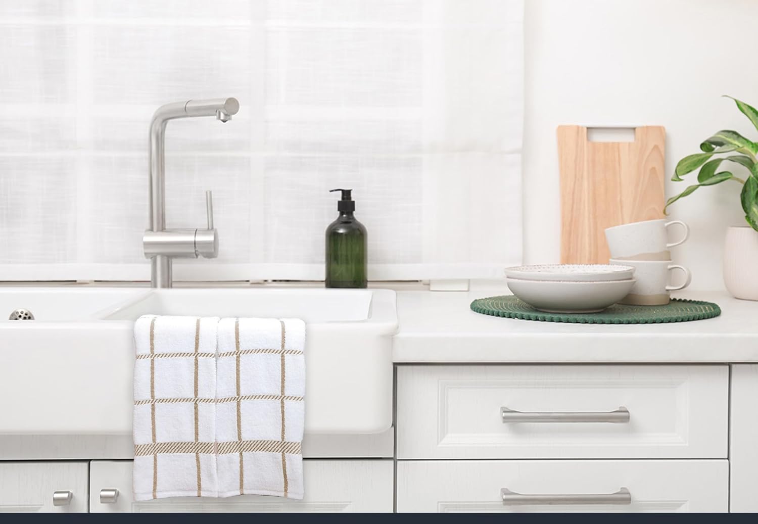 100% Cotton Terry Dish Towels, 4 Pack Checks, 16 x26 Inches, Super Soft and Absorbent Kitchen Towels, Perfect for Kitchen Cleaning and Dish Washing | Tan