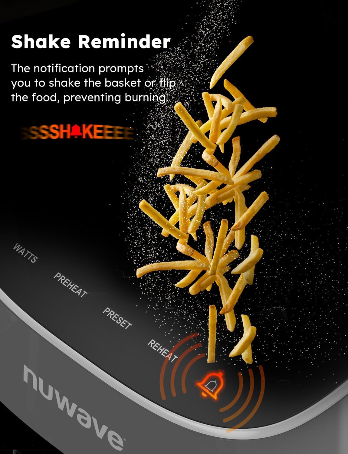 Nuwave Brio Plus 8 Qt Air Fryer, PFAS Free, New & Improved, Digital Touch Screen, Cool White Display, 50°F~400°F in Precise 5°, 5 Cook Functions, 100 Presets & 50 Memory, 3 Wattages 700, 1500, 1800