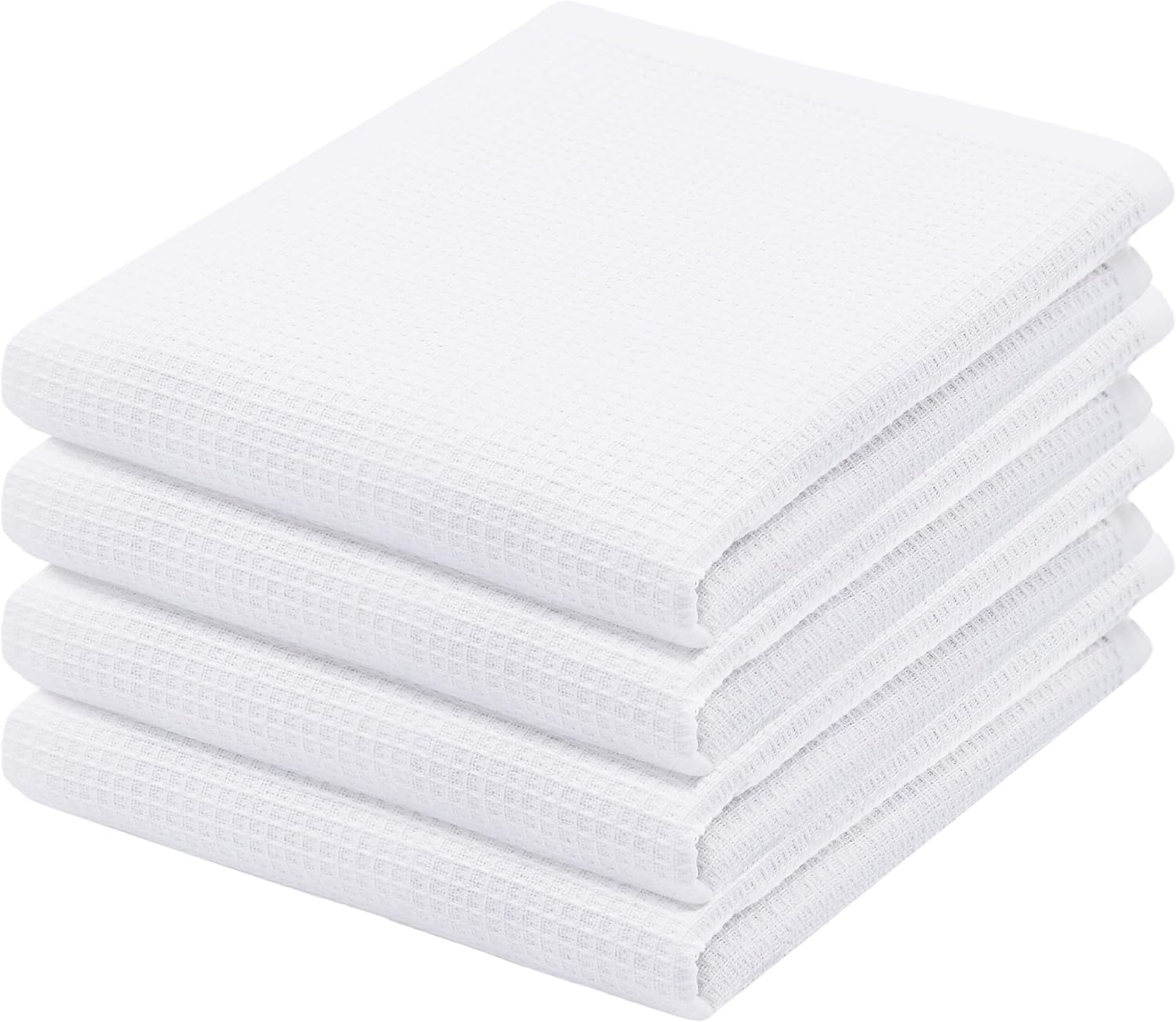 - Pack of 4 Waffle Weave Dish Towels measuring 15 by 25 Inches.
