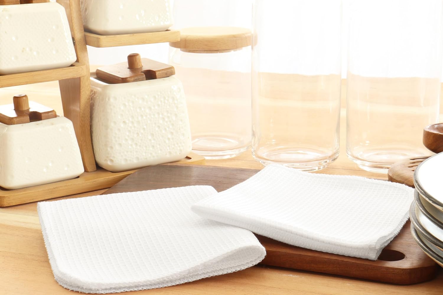 PurpleEssences Dish Cloths and Dish Rags - 6 Pack Waffle Weave Solid Kitchen Dish Wash Cloths, 100% Cotton, 12 x 12 Inches, Ultra Soft Absorbent Quick Drying - Spring Summer - White