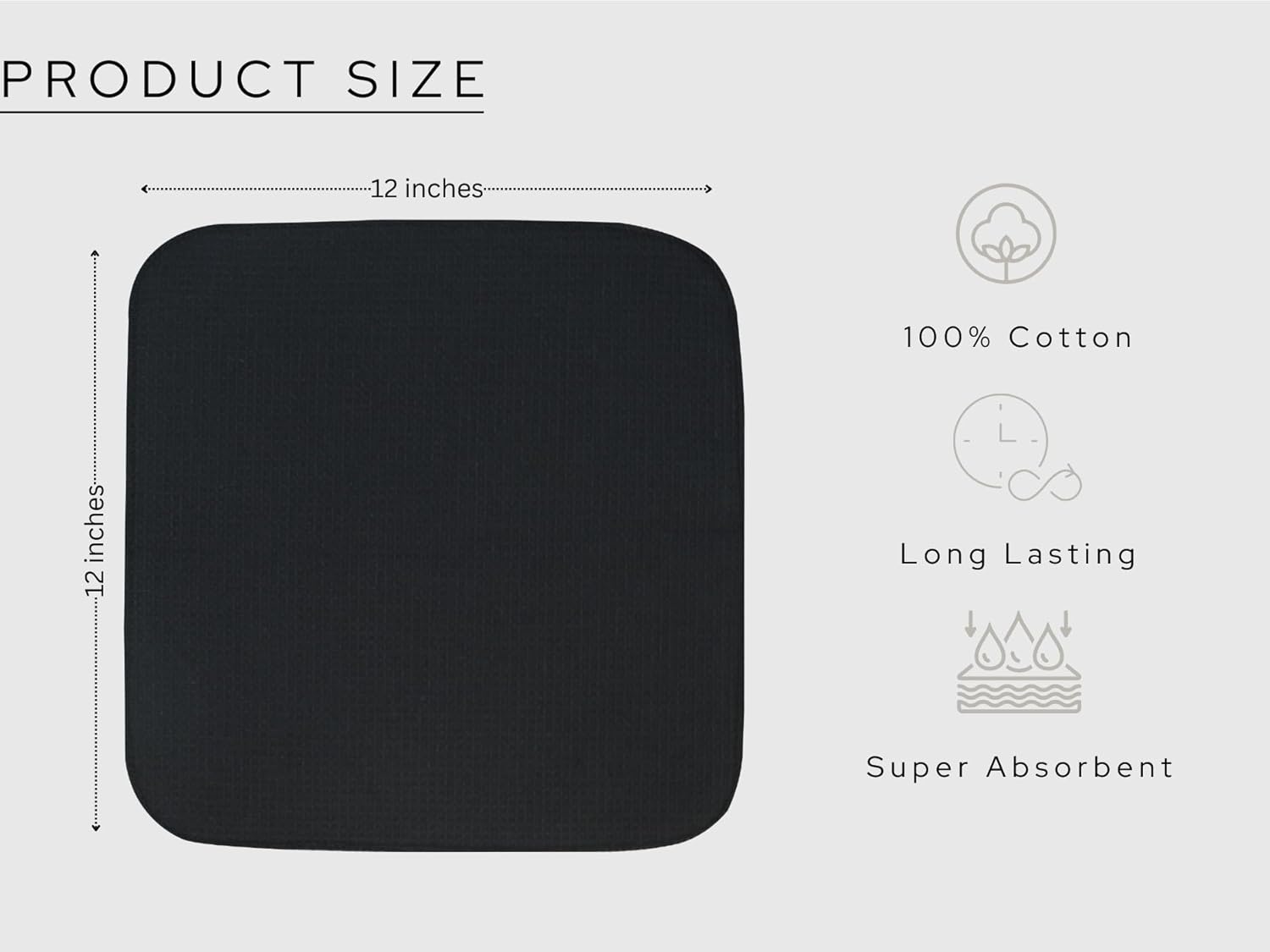 PurpleEssences Dish Cloths and Dish Rags - 6 Pack Waffle Weave Solid Kitchen Dish Wash Cloths, 100% Cotton, 12 x 12 Inches, Ultra Soft Absorbent Quick Drying - Spring Summer - Black