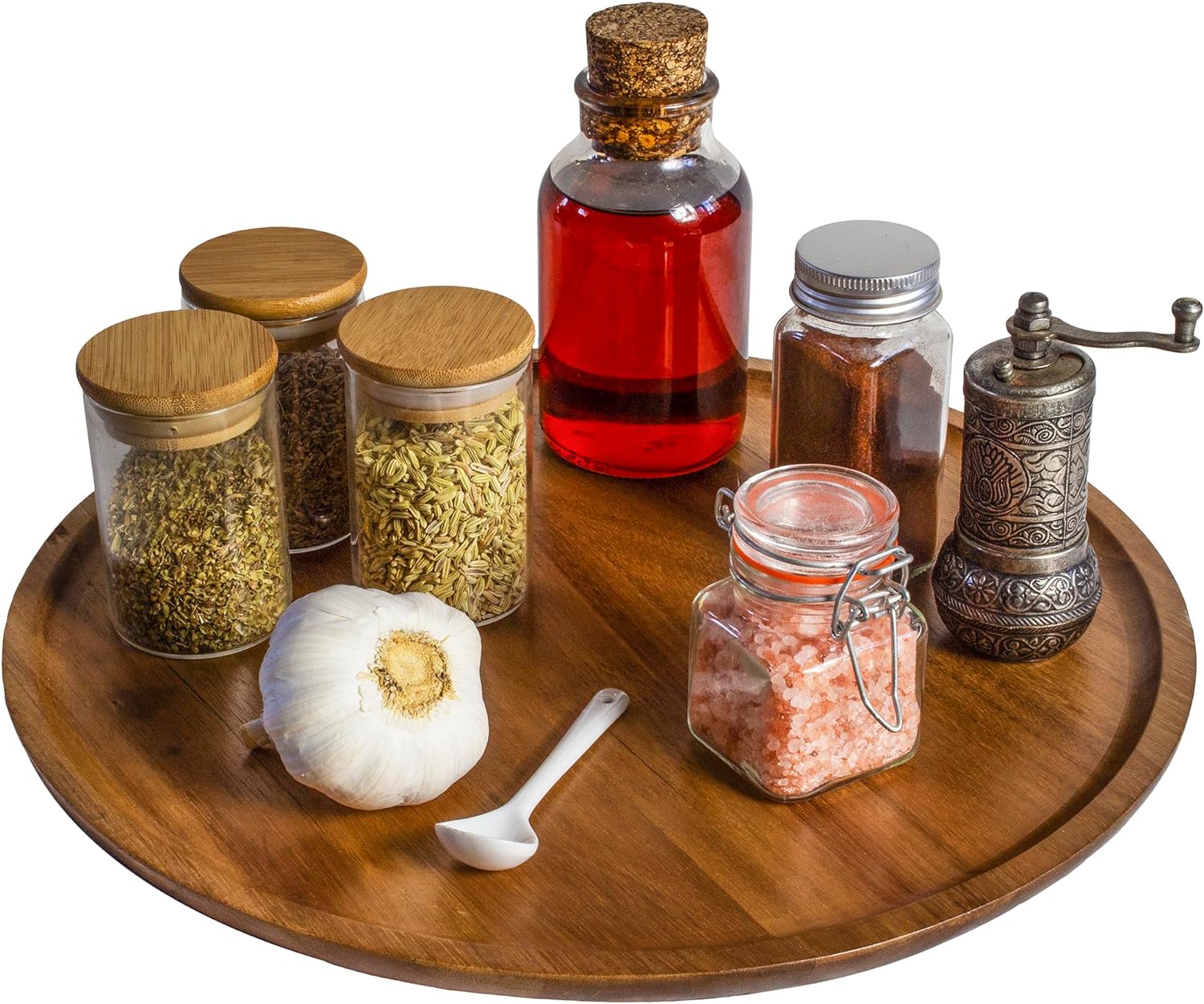 Acacia Wood Lazy Susan Organizer Kitchen Turntable for Cabinet, Table, Pantry or Countertop