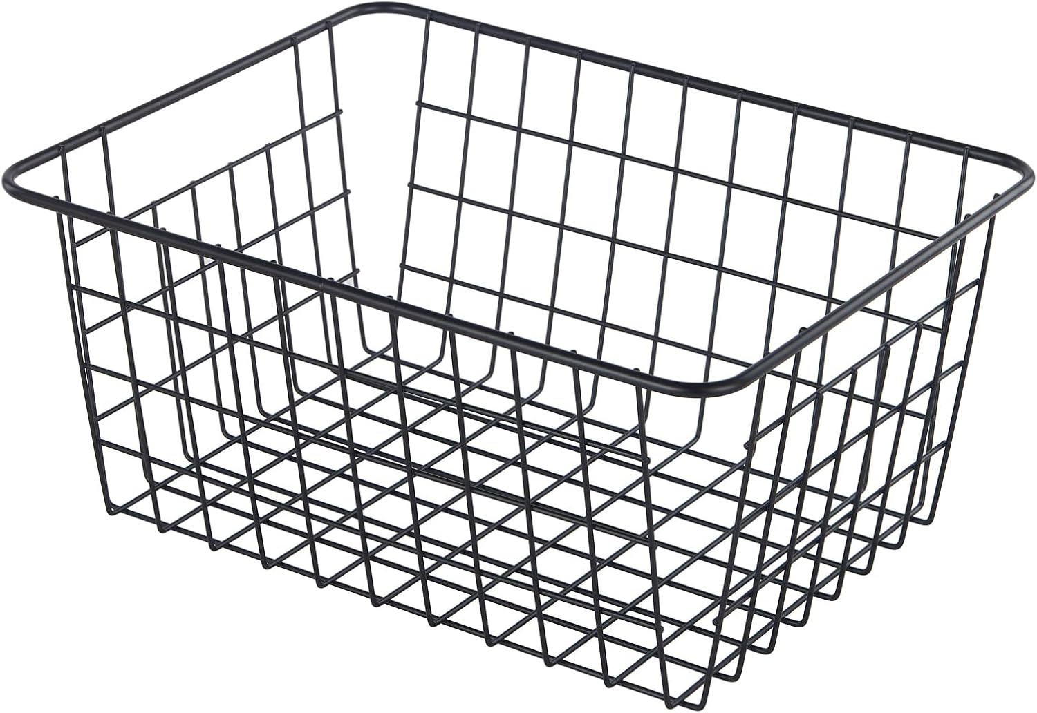 JUNCHU CHERRY【Extra Large】Wire Kitchen Storage Baskets 2 Packs,Perfect Pantry Organization Accessories Basket,Laundry Basket,Suitable for Countertop, Kitchen, Bedroom, Bathroom,Black