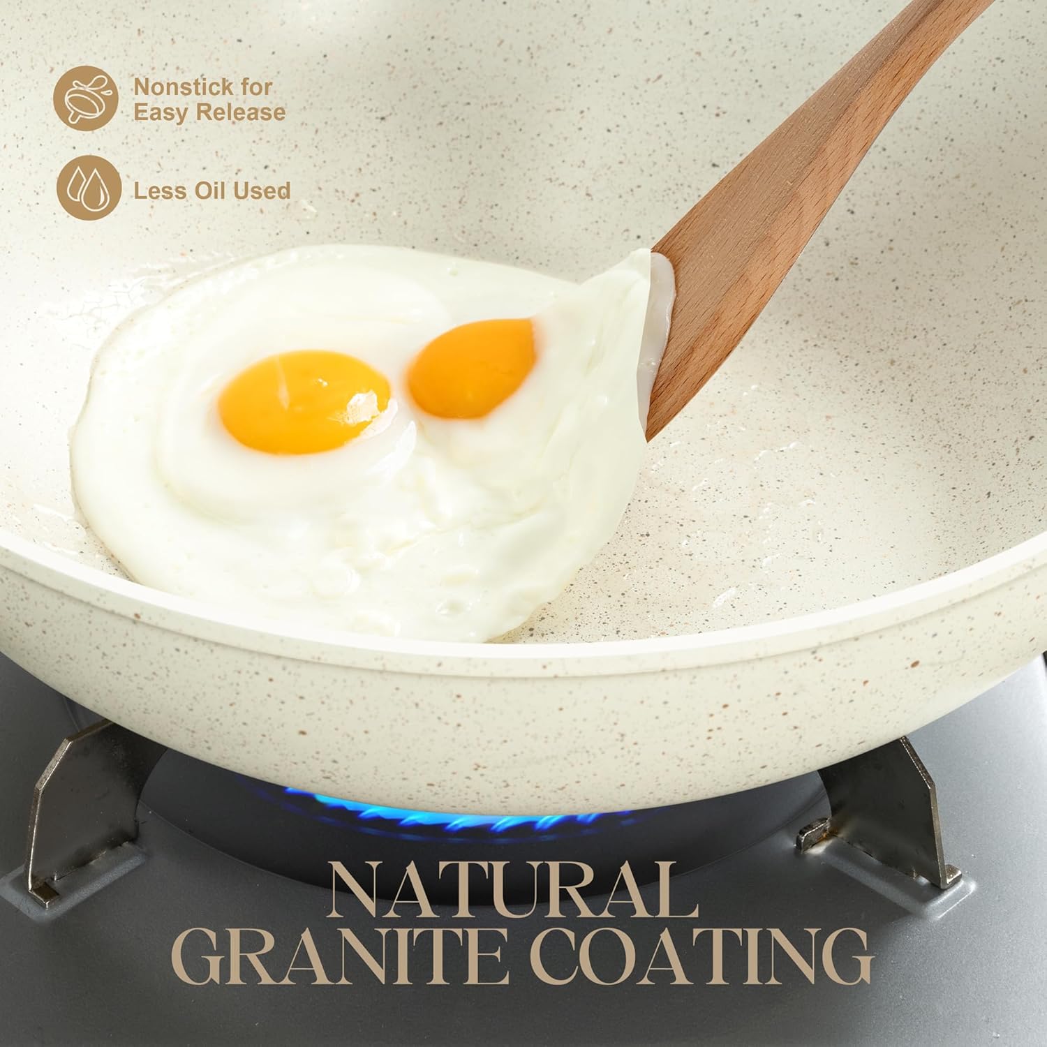 - Healthy Nonstick Coating - The granite non stick wok coating is free from toxic substances, ensuring health cooking, making cleaning effortless.