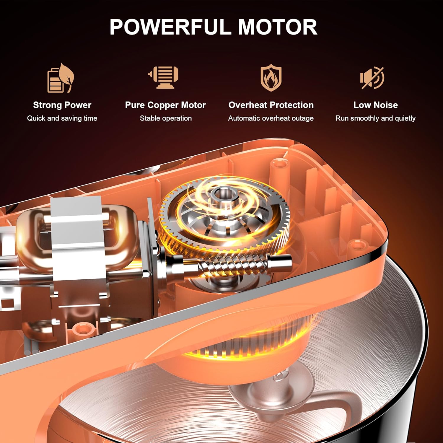 - Versatile Attachments Included: Our baking mixer comes with a dough hook, whisk, beater and a silicone spatula, enabling you to tackle a variety of recipes, from heavy dough to light meringues, ensuring professional-quality results every time