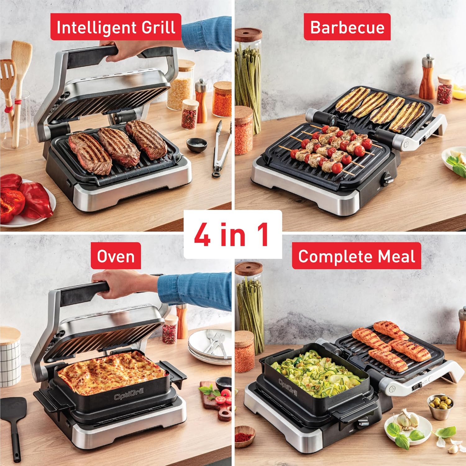 - 4 DEVICES IN 1: an intelligent grill, BBQ, oven and complete-meal cooking device all in one—for total versatility and a variety of daily meals.