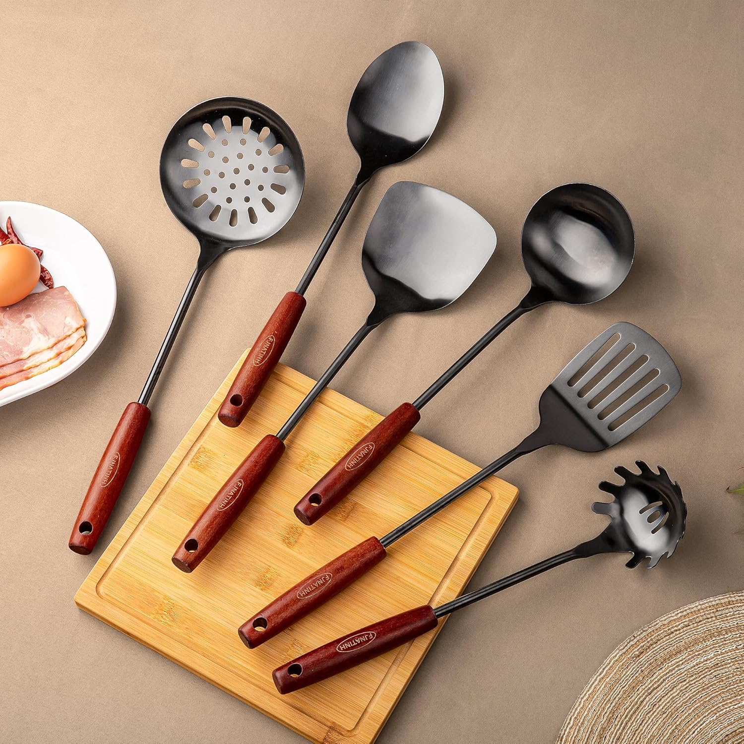 - 【Design of the Kitchenware Set】 the wooden handle is ergonomic, the stainless steel is durable and heat-resistant,and the appearance is classic. Specially designed for cooking food, it can be easily turned and cooked to help you make delicious dishes