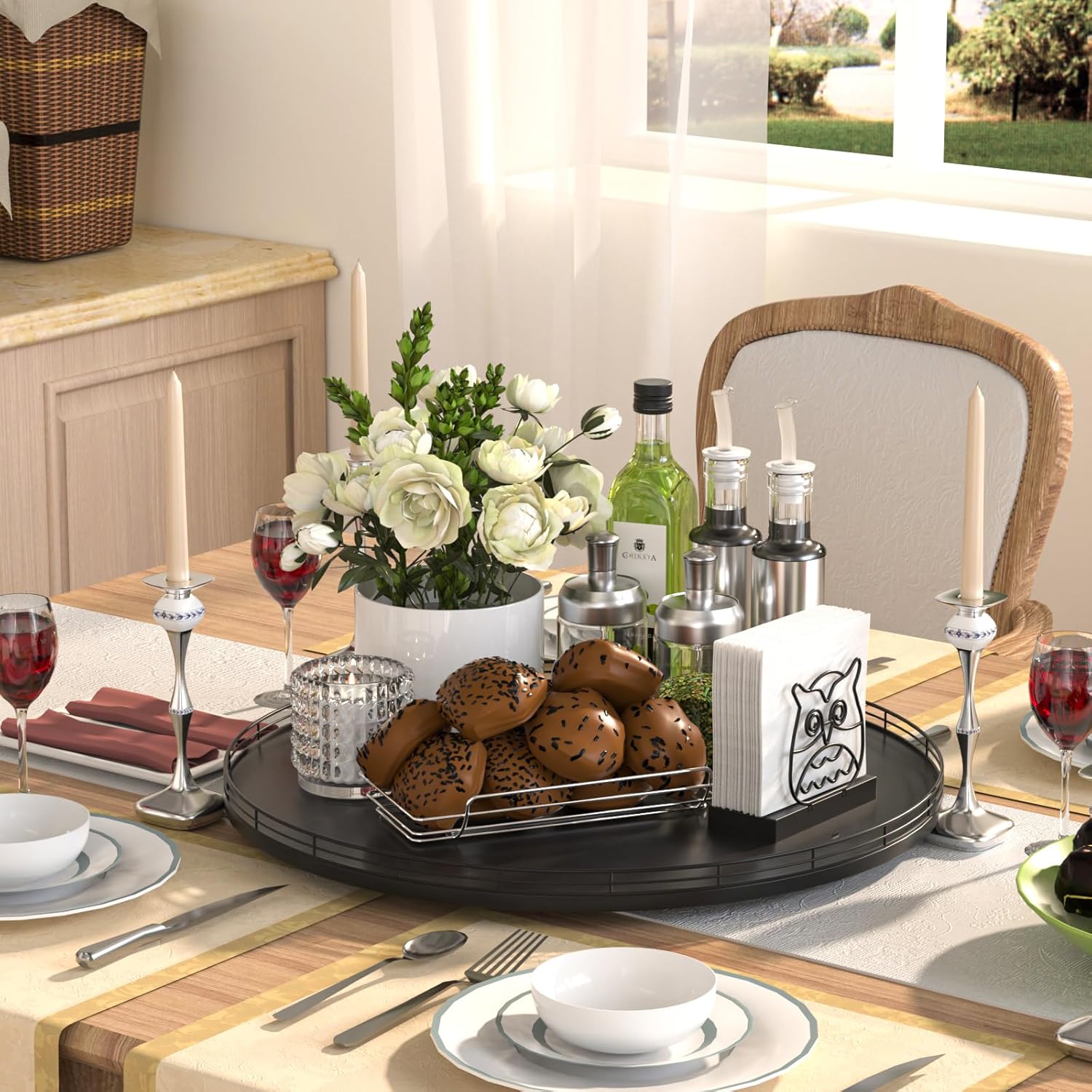- ๐ ๐๐น๐๐ถ-๐ฃ๐๐ฟ๐ฝ๐ผ๐๐ฒ ๐จ๐๐ฎ๐ด๐ฒ: Perfect for a wide range of occasions and spaces. Whether used as a centerpiece table decorations, a vanity tray in your bathroom, or condiment organizer on your kitchen, this versatile round tray adapts to your needs in any room