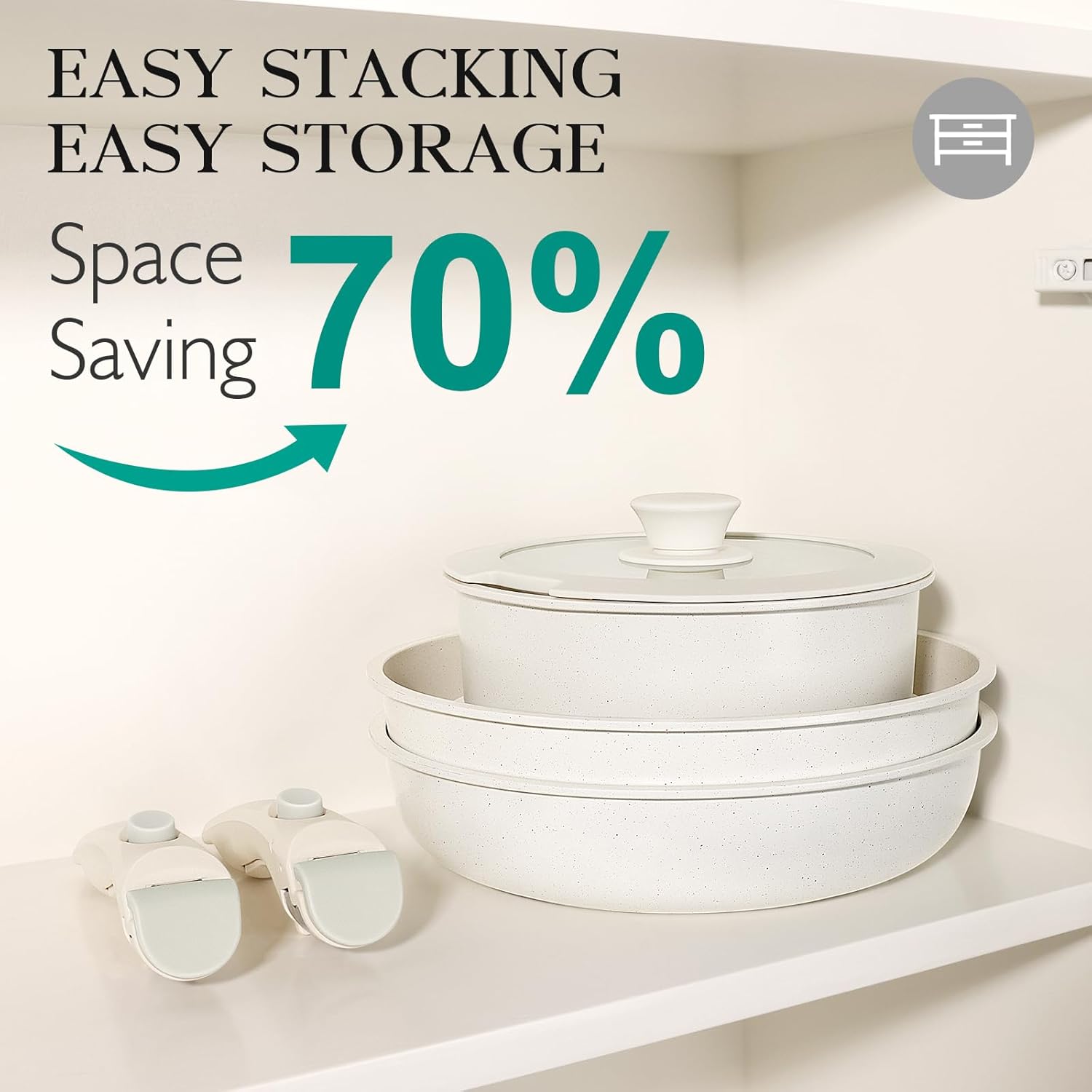 GiPP 5Pcs Pots and Pans Set Non Stick, Cookware Sets Nonstick Detachable Handle, Induction Kitchen Set Removable Handle, RV Cookware set, Oven Safe