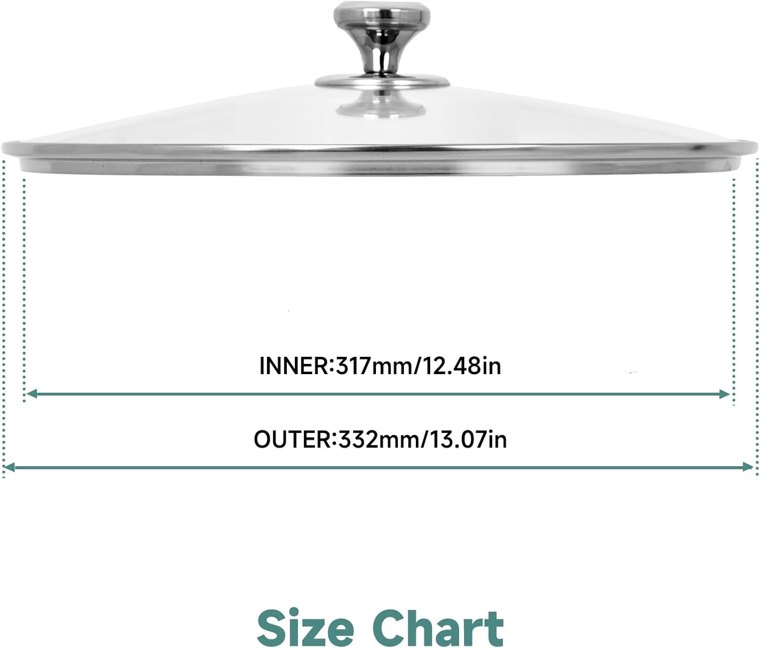 - 【Match All 12 INCH Pans and Pots】just all 12 in pots in your kitchen, the tempered glass lid fits 12 Inch Cast Iron, Cast Aluminium, stainless steel pans and pots, for frying pan skillets, deep saute pan, wok & stir pans, commercial sauce pan, and large dutch ovens...There are several easy-grip styles of knobs for selection, round stainless steel knob glass lid,round black knob glass lid, D shape handle, you can pick the fittest one according to your pan style.